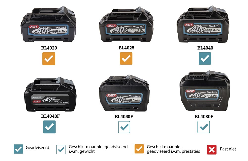 Gewicht met XGT BL4020 accu3,1 kg