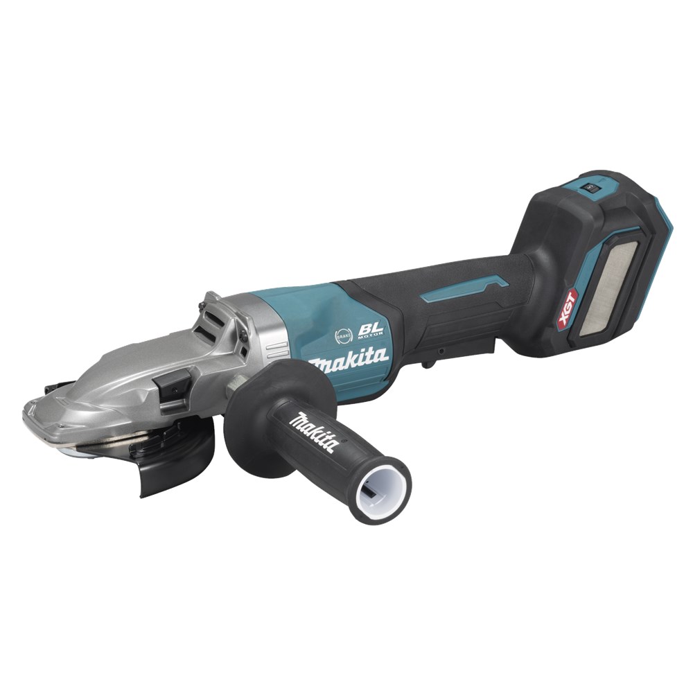 XGT 40 V Max Haakse slijper met een platte kop voor werkzaamheden in hoeken tot 39°. De GA056G is uitgerust met een veiligheidsschakelaar en variabele toerenregeling (3.000–9.000 tpm).De machine is voorzien van Active Feedback sensing Technology (AFT), waardoor hij automatisch uitschakelt bij een plotselinge reductie in toerental of wanneer de schijf vastklemt in het materiaal. Daarnaast beschikt hij over soft start en heropstartbeveiliging. Dankzij de rem komt de schijf na uitschakelen binnen enkele seconden tot stilstand.De beschermkap is snel, eenvoudig en gereedschapsloos te verstellen.