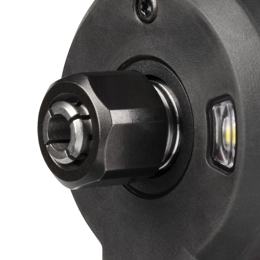Maximale controle voor elk materiaal, 4-traps snelheidsinstelling en variabele snelheidsregeling, ideaal voor werken met roestvrij staal, hardmetalen frezen en accessoires tot 76 mm..