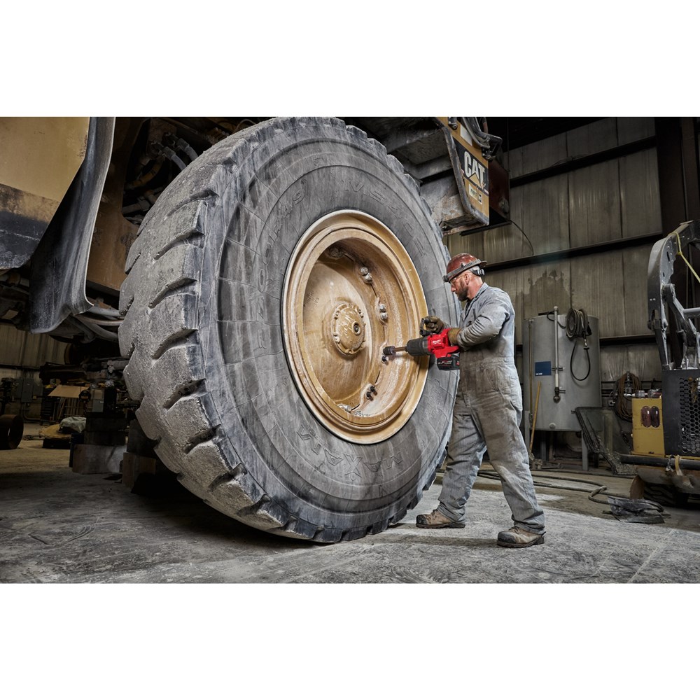 • De M18 FUEL™ slagmoersleutel hoog koppel met een 150 mm verlengde aandrijfas levert 2576 Nm bevestigingskoppel ter vervanging van AC-, benzine- of pneumatische oplossingen