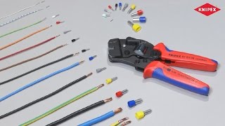Voor het krimpen van adereindhulzen volgens DIN 46228 deel 1 + 4. Voor soldeervrije, elektrische verbindingen. Frontale invoering van adereindhulzen in het gereedschap. Gemakkelijke hantering door automatische instelling op hulsmaat. Vierkantkrimping voor optimale contactvlakken in de klemaansluiting. Constante, hoge krimpkwaliteit door dwangsluiting (ontgrendelbaar). Krimpdruk is in de fabriek nauwkeurig ingesteld (gekalibreerd). Krachtversterking door hefboomoverbrenging voor moeiteloos werken. Hoog bedieningscomfort dankzij de handvriendelijke constructie en het geringe gewicht. Alle belaste delen uit speciaal staal, in olie gehard en getemperd Model: Krimpen van 0,08 - 10,0 mm² en 16,0 mm² in één profiel. Met keuzehendel voor de instelling van de krimpcapaciteit 0,08 - 10 of 16,0 mm².