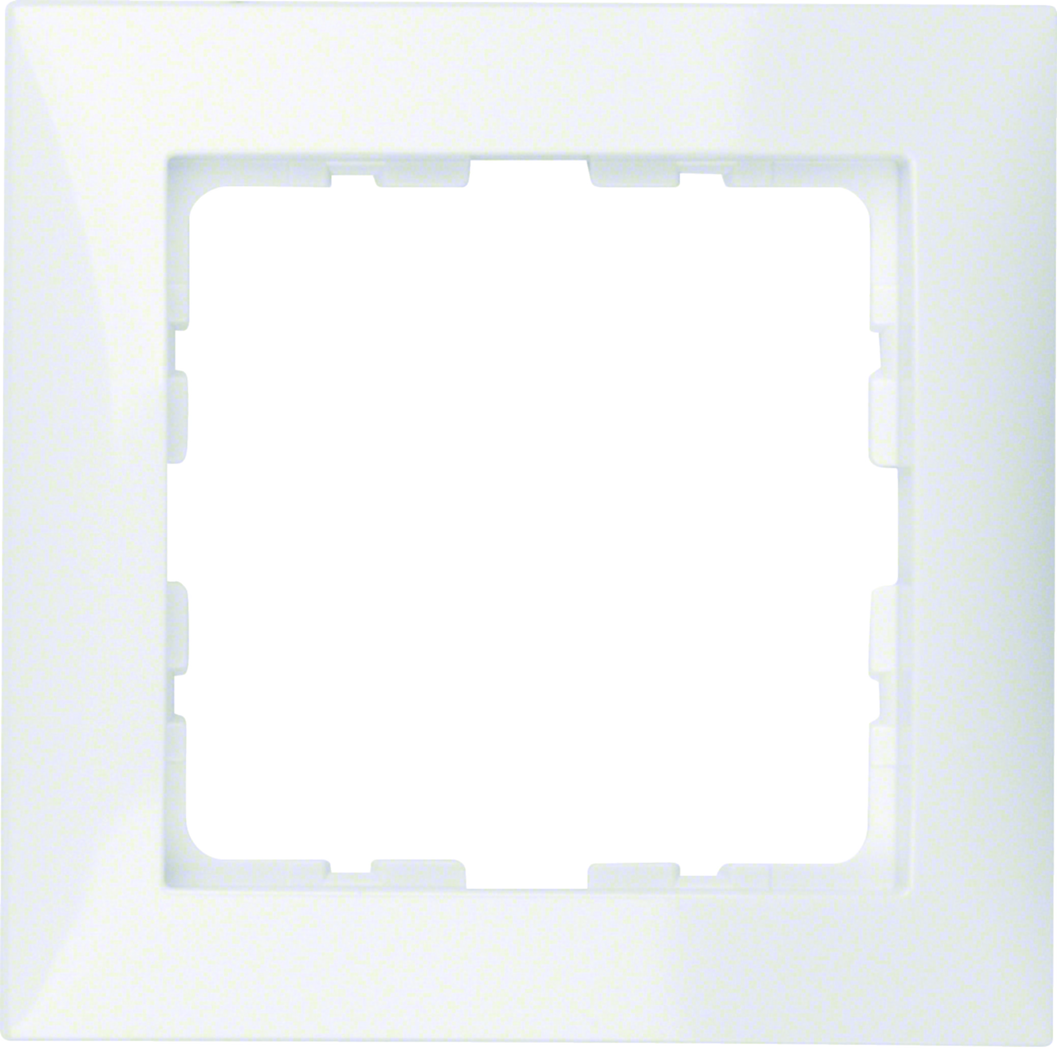 Hager Berker S.1 afdekraam schakelmateriaal, kunststof, wit, (bxhxd) 80.5x80.5x9.5mm, variant polarwit, uitvoering oppervlakte glanzend, montagerichting horizontaal en verticaal, geschikt voor wandgoot, 1 eenheid, RAL-nummer 9010, 1 eenheden horizontaal, 1 eenheden verticaal.