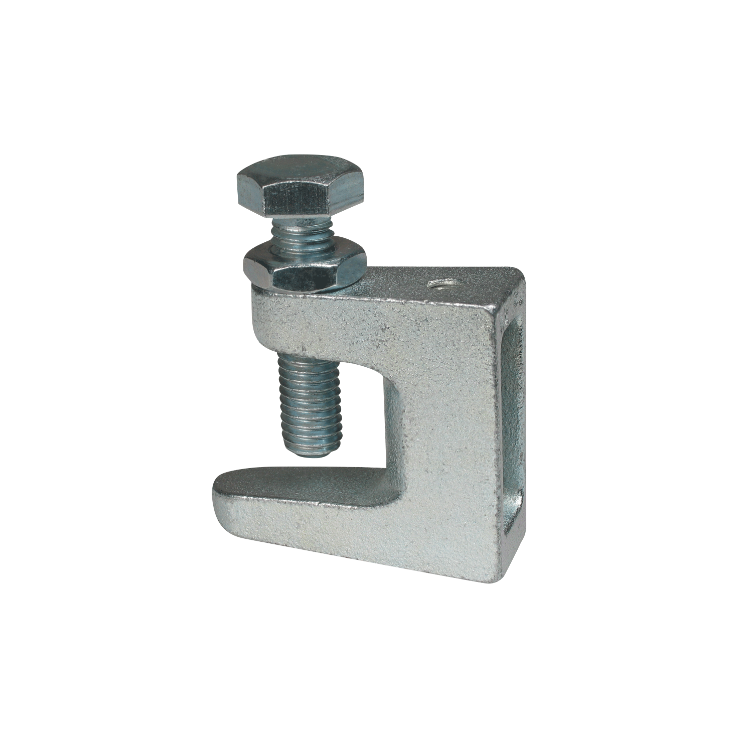 Balkklem M8 met VdS keur smeedbaar gietijzer. Volgens VDS voorschrift moeten balkklemmen voor bevestiging van sprinklerbuizen, groter dan DN65 met een zekerheidsstrip tegen zijdelings afglijden geborgd worden.