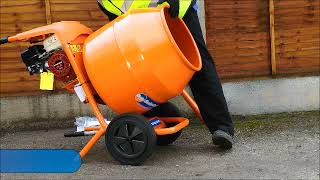 Deze lichte en eenvoudig verplaatsbare professionele betonmolen mengt een volle kruiwagenlading. Bij gebruik van de standaard kan er op kruiwagenhoogte gemengd en gekiept worden. Ideaal te gebruiken op kleine en middelgrote bouwprojecten.