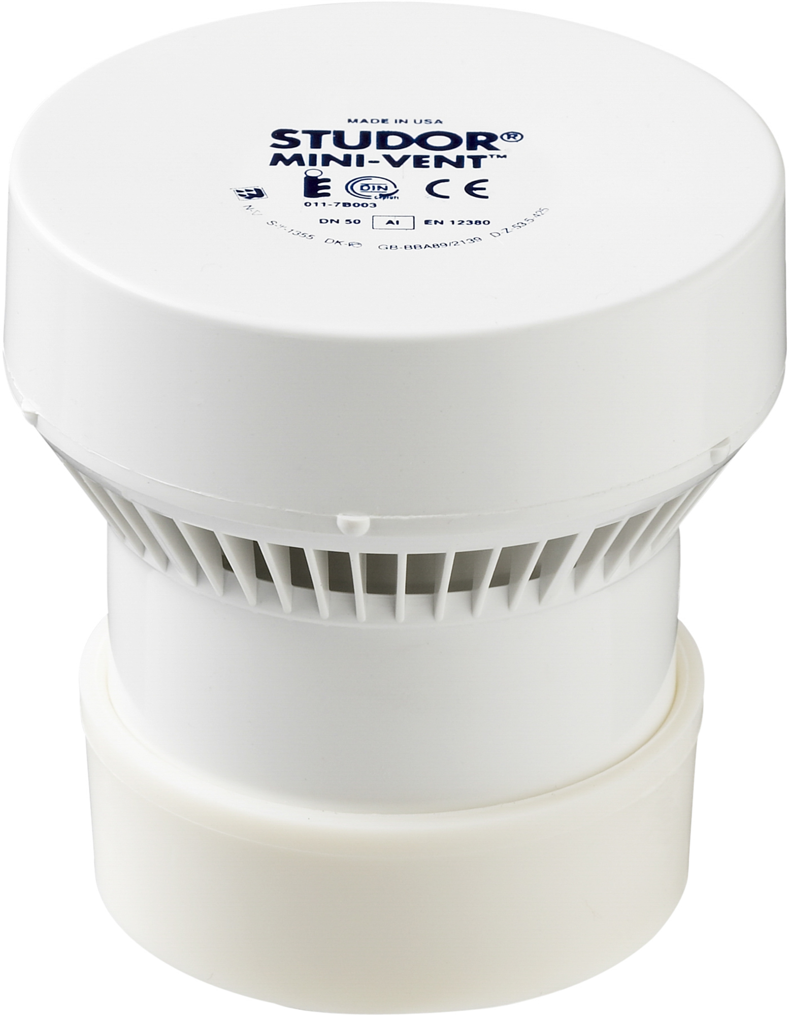 Wisa Studor Ministudor beluchter, uitwendige buisdiameter 50mm, hoogte 70mm, huis ABS, aansluiting 1 knelverbinding (manchet), nom. binnendiameter overig, oppervlaktebescherming geen (onbehandeld).