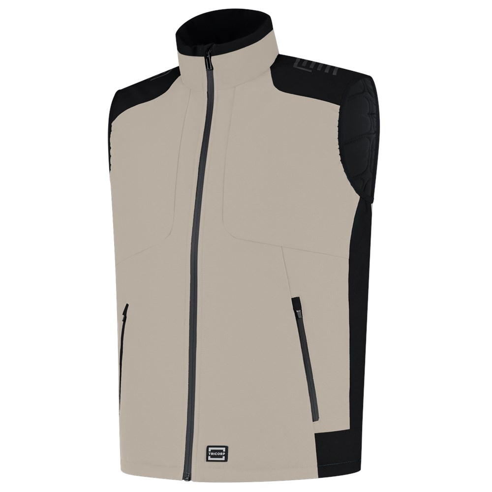 De Bodywarmer Redefined van Tricorp is dé keuze voor wie warmte en bewegingsvrijheid wil combineren met een robuuste uitstraling. Gemaakt van 100% gecertificeerd gerecycled polyester in een stevige high elastic ripstop kwaliteit, met een doekgewicht van 200 g/m². Deze gevoerde bodywarmer is winddicht en ademend en vervaardigd uit waterdicht doek, dus ideaal voor wisselende weersomstandigheden. Met een fleecekraag voor extra comfort, een verstelbaar koord in de taille, en een verlengd rugpand, sluit de Bodywarmer Redefined perfect aan op jouw lichaam. De waterdichte ritssluiting en de afsluitbare zij- en binnenzakken houden je spullen veilig en droog. Dankzij de reflecterende elementen op rug en schouders ben je ook in het donker beter zichtbaar. Naast topkwaliteit op het gebied van bescherming en comfort, kies je met dit product ook bewust voor duurzaamheid; Deze bodywarmer draagt niet alleen het GRS-keurmerk, maar ook het OEKO-TEX® 100-label ontbreekt niet. Deze unisex bodywarmer is voorzien van een regular fit en verkrijgbaar in maat XS tot en met 5XL, evenals in de kleuren Anthracite, Black, Ink, Sand-Black, Teal-Black en White. Combineer deze bodywarmer met andere items uit de Redefined-lijn voor een complete, professionele en duurzame werkoutfit.
