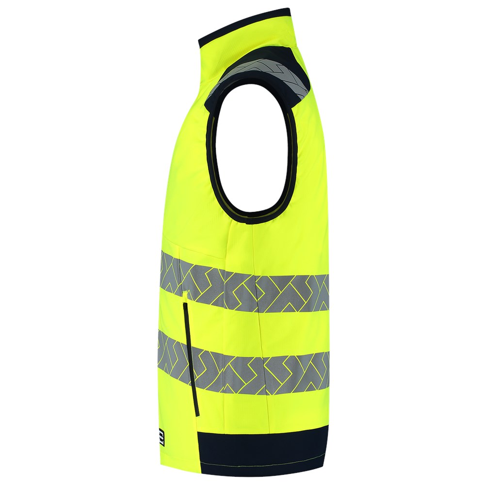 De Bodywarmer High Vis Redefined van Tricorp biedt zichtbaarheid, bescherming en comfort in één robuuste laag. Gemaakt van 100% gerecycled polyester met een stevige ripstop-structuur en een doekgewicht van 200 g/m2, is deze bodywarmer een duurzame keuze. Dankzij het ademende en waterafstotende materiaal blijf je droog én comfortabel, zelfs als het weer niet meewerkt. De gevoerde binnenkant houdt je warm, terwijl de high visibility reflectie-elementen rondom de torso en op de schouders zorgen dat je altijd opvalt. Ideaal voor professionals in de bouw, logistiek en infra die buiten presteren onder elke omstandigheid. De verstelbare taille, verlengd rugpand en comfortabele fleecekraag zorgen voor een perfecte pasvorm en extra bewegingsvrijheid. Met meerdere afsluitbare zakken, inclusief een waterdichte binnenzak, heb je jouw essentials altijd binnen handbereik. De bodywarmer voldoet aan de EN ISO 20471-normering, wat betekent dat je zichtbaar bent en blijft , ook bij weinig licht of in gevaarlijke werksituaties. Daarnaast is de Bodywarmer High Vis Redefined een verantwoorde keuze. Deze bodywarmer draagt niet alleen het GRS-keurmerk, maar ook het OEKO-TEX® 100-label ontbreekt niet. De Bodywarmer High Vis Redefined is verkrijgbaar in de maten XS tot en met 5XL en in de kleuren Fluor Yellow Ink en Fluor Orange Ink. Combineer deze bodywarmer met andere items uit de High Vis Redefined-lijn voor een complete, professionele en duurzame werkoutfit.