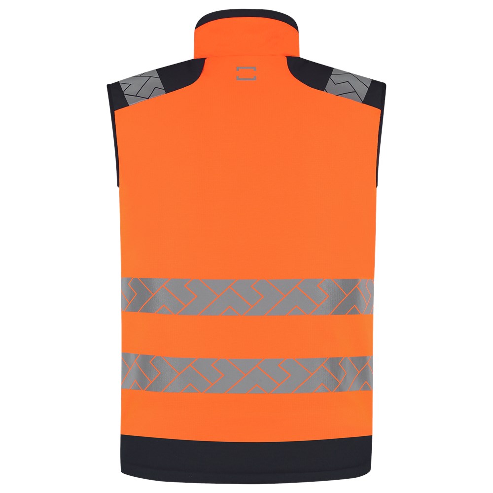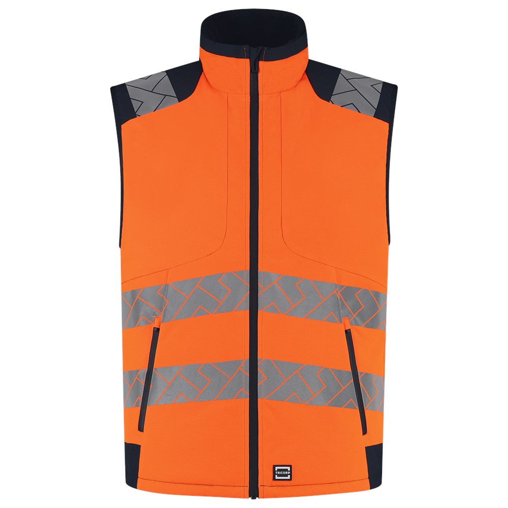 De Bodywarmer High Vis Redefined van Tricorp biedt zichtbaarheid, bescherming en comfort in één robuuste laag. Gemaakt van 100% gerecycled polyester met een stevige ripstop-structuur en een doekgewicht van 200 g/m2, is deze bodywarmer een duurzame keuze. Dankzij het ademende en waterafstotende materiaal blijf je droog én comfortabel, zelfs als het weer niet meewerkt. De gevoerde binnenkant houdt je warm, terwijl de high visibility reflectie-elementen rondom de torso en op de schouders zorgen dat je altijd opvalt. Ideaal voor professionals in de bouw, logistiek en infra die buiten presteren onder elke omstandigheid. De verstelbare taille, verlengd rugpand en comfortabele fleecekraag zorgen voor een perfecte pasvorm en extra bewegingsvrijheid. Met meerdere afsluitbare zakken, inclusief een waterdichte binnenzak, heb je jouw essentials altijd binnen handbereik. De bodywarmer voldoet aan de EN ISO 20471-normering, wat betekent dat je zichtbaar bent en blijft , ook bij weinig licht of in gevaarlijke werksituaties. Daarnaast is de Bodywarmer High Vis Redefined een verantwoorde keuze. Deze bodywarmer draagt niet alleen het GRS-keurmerk, maar ook het OEKO-TEX® 100-label ontbreekt niet. De Bodywarmer High Vis Redefined is verkrijgbaar in de maten XS tot en met 5XL en in de kleuren Fluor Yellow Ink en Fluor Orange Ink. Combineer deze bodywarmer met andere items uit de High Vis Redefined-lijn voor een complete, professionele en duurzame werkoutfit.