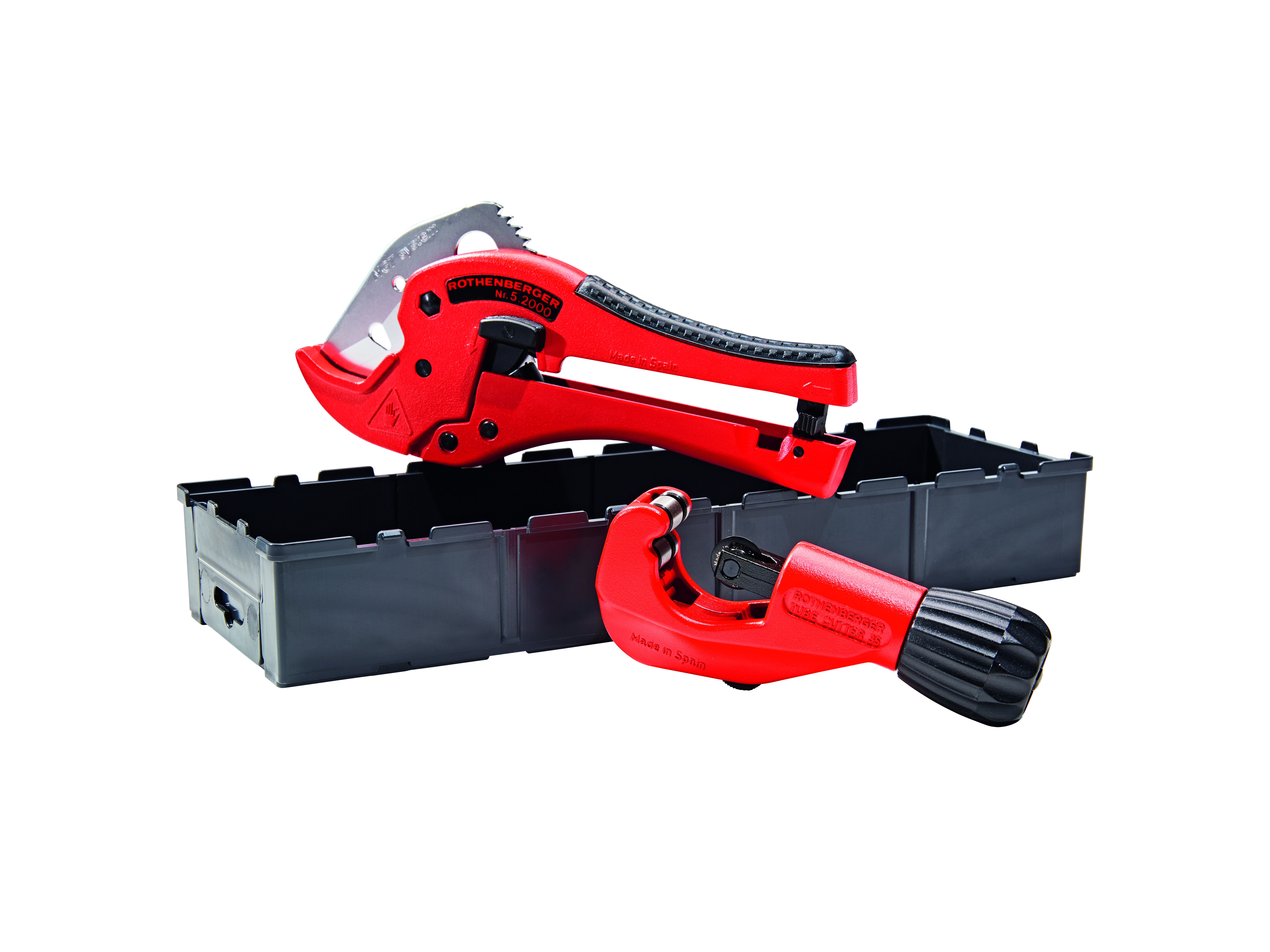 Actieset voorzien van buisschaar Rocut TC42 en pijpsnijder Tube Cutter 35.