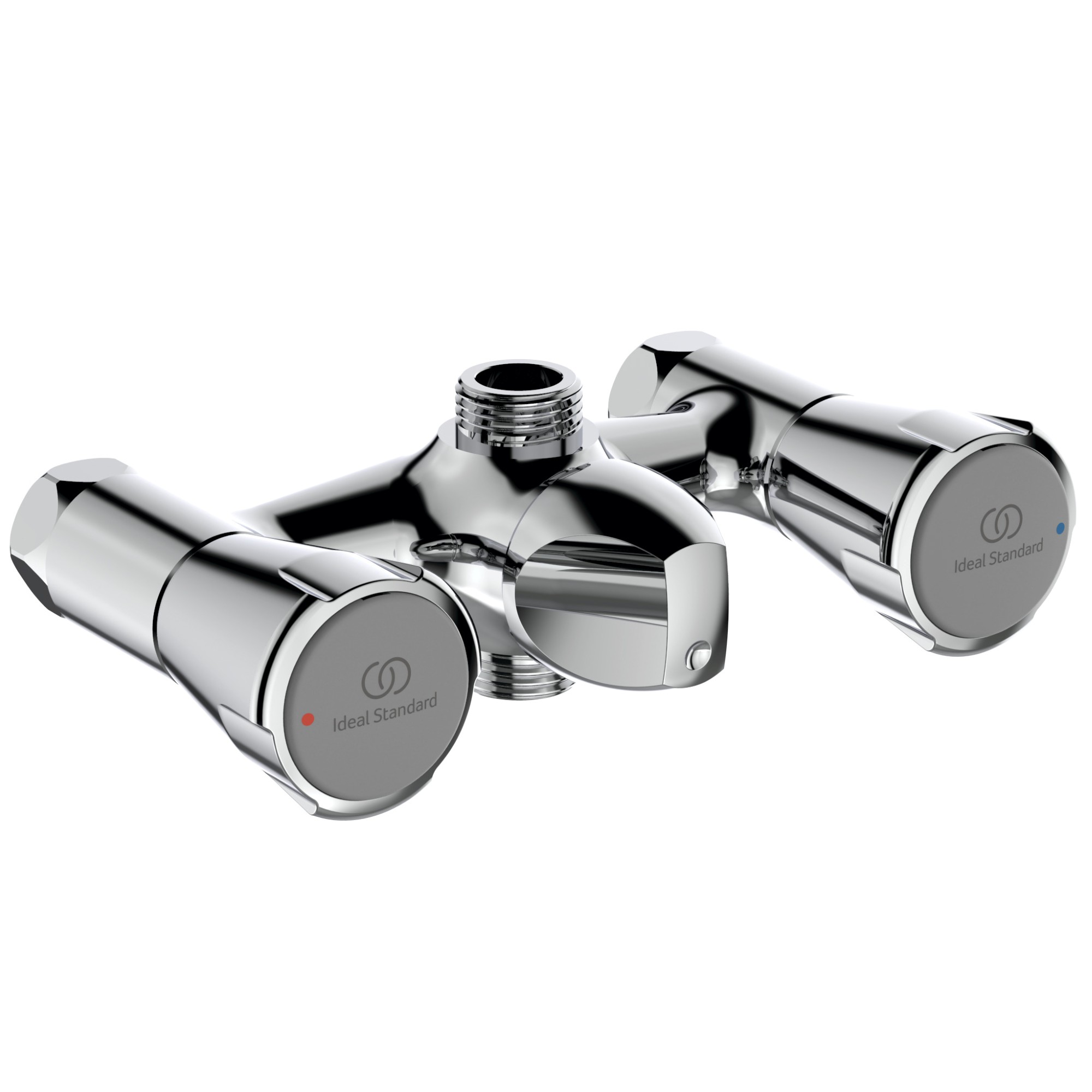Venlo Nimbus II Messing Eco douchemengkraan (opbouw), chroom, kraan messing, oppervlaktebescherming verchroomd, oppervlaktebehandeling gepolijst, hartafstand 120mm, aansluiting aanvoer binnendraad, maat aansluiting aanvoer 1/2", plaats uitlaat naar beneden, nom. diameter uitlaat 1/2".