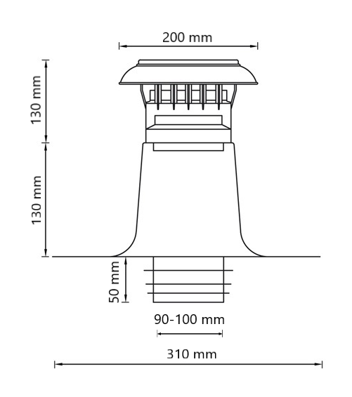 Anjo Vent-Alu 3000 dubbelwandige platdak ontluchting met bovenkap. Type 90-100. Aluminium.
