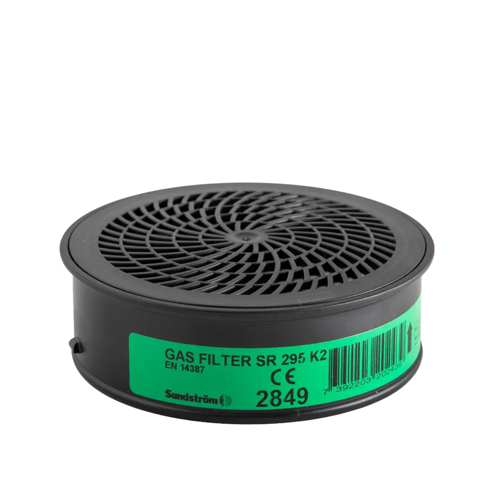 Gasfilters SR 295 klasse 2 zijn ontworpen voor gebruik met Sundström halfgelaatsmaskers en volgelaatsmaskers. De filters zijn van type K en bieden bescherming tegen ammoniak en bepaalde aminen, zoals ethyleendiamine. Het gasfilter kan eenvoudig worden gecombineerd met deeltjesfilter SR 510 P3 R om ook bescherming te bieden tegen aerosolen (deeltjes), bijvoorbeeld tijdens hogedrukreiniging.