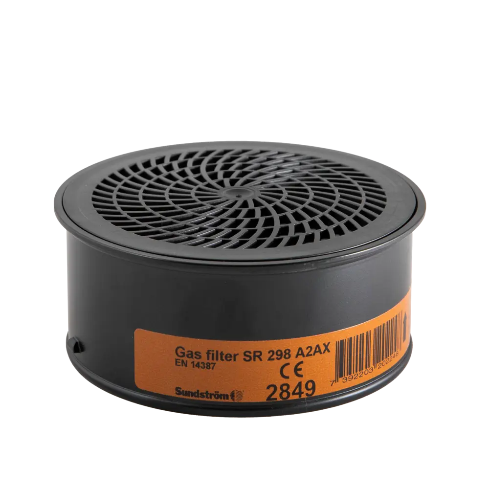 Gasfilter SR 298 is ontworpen voor gebruik met Sundström halfgelaatsmaskers en volgelaatsmaskers. Het filter is van het type A2AX en biedt bescherming tegen organische gassen en dampen, zoals oplosmiddelen. Het gasfilter kan eenvoudig worden gecombineerd met deeltjesfilter SR 510 P3 R om ook bescherming te bieden tegen aerosolen (deeltjes), bijvoorbeeld tijdens het spuiten.