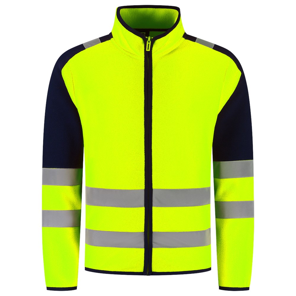 Het Fleecejack High Vis Redefined van Tricorp is dé keuze voor professionals die zichtbaar én duurzaam willen werken. Gemaakt van 100% gerecycled polyester fleece van 270 g/m², biedt dit jack een warme, comfortabele laag met een duidelijke focus op veiligheid. Dankzij de gestikte reflectiebanden op de mouwen en schouders blijf je zichtbaar conform EN ISO 20471 klasse 2. De normering blijft tot wel 50 wasbeurten op 40 graden behouden. Met een ritssluiting, hoge kraag en ingezette zakken met rits is dit fleecejack net zo praktisch als robuust. De regular fit zorgt voor een comfortabele pasvorm, ideaal om te combineren met andere lagen tijdens koudere werkdagen. Uitgevoerd in een bicolor ontwerp, gecertificeerd volgens GRS én voorzien van het OEKO-TEX 100-keurmerk is dit is een verantwoorde keuze. Het Fleecejack is verkrijgbaar in de maten XS tot en met 5XL en de kleuren Fluor Orange-Ink en Fluor Yellow-Ink. Combineer dit fleecejack met andere items uit de High Vis Redefined-lijn voor een complete, professionele en duurzame werkoutfit.