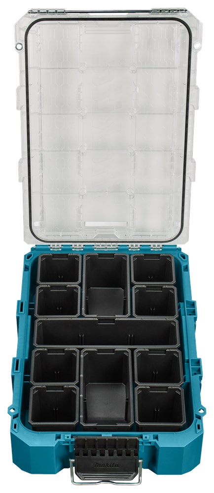 De MAKTRAK Maktrak Organizer Medium is een robuuste, modulaire opbergkist voor het overzichtelijk vervoeren en organiseren van accessoires, bevestigingsmateriaal en klein gereedschap. Deze organizer maakt deel uit van het MAKTRAK systeem en is eenvoudig te combineren met andere MAKTRAK kisten. Met een inhoud van 18,4 liter en een draagvermogen van 22,6 kg is hij verrassend ruim en geschikt voor intensief gebruik op de bouwplaats. Dankzij het transparante deksel is de inhoud in één oogopslag zichtbaar, zonder te openen. Toepassing Perfect voor vakmensen die dagelijks werken met veel losse onderdelen en klein gereedschap. De diepe, flexibele indeling en het heldere overzicht maken deze organizer ideaal voor zowel bouwplaats als businrichting. Het modulaire ontwerp wat eenvoudig met andere MAKTRAK modules is te combineren maakt het ideaal voor intensief gebruik op de bouwplaats én eenvoudig vervoer in werkbussen.