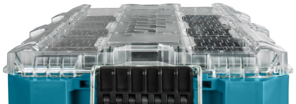 • Transparant deksel met ribstructuur houdt bakken én inhoud stevig op hun plek, ook bij het verticaal verplaatsen van de Organizer.