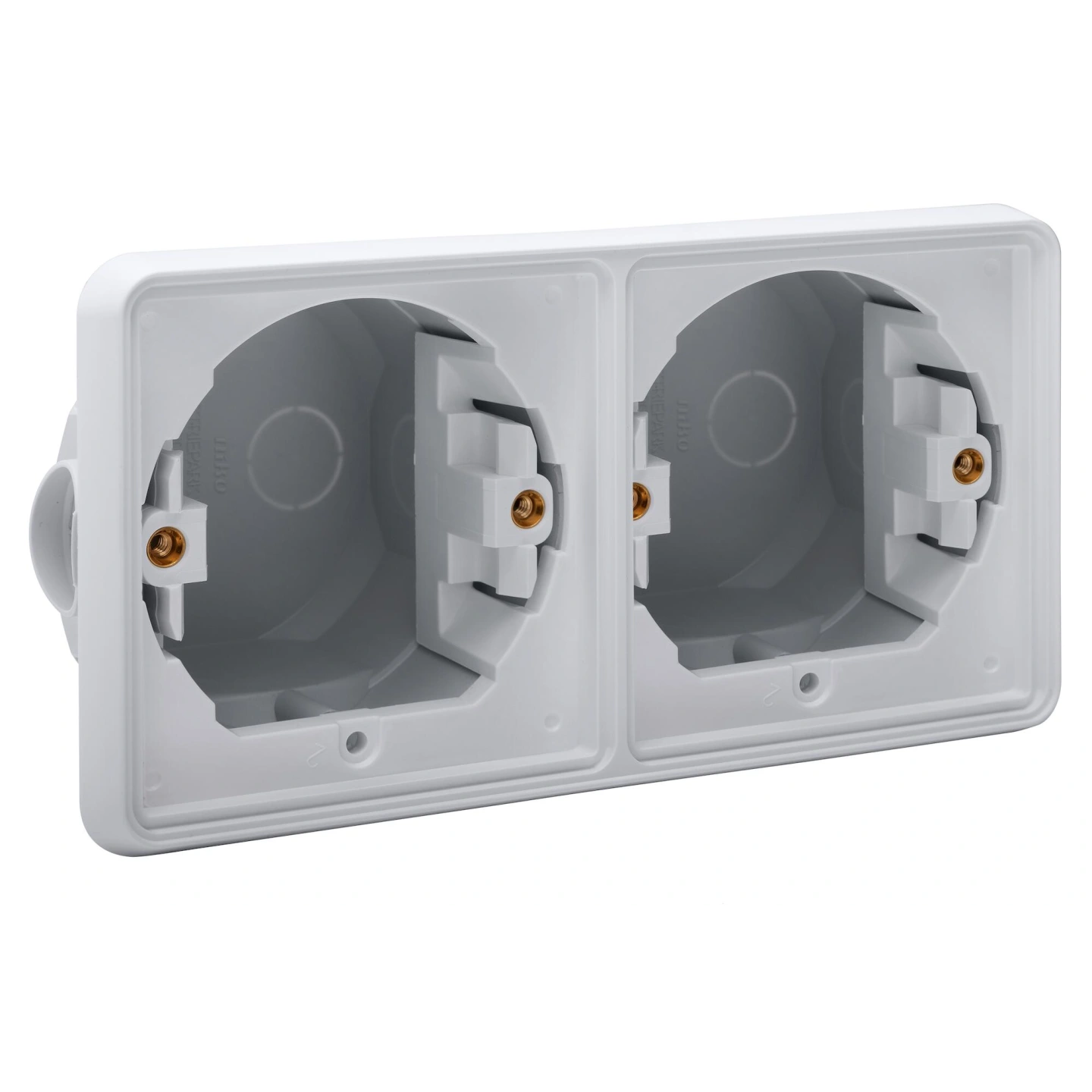 Deze tweevoudige horizontale montagedoos is geschikt voor het inbouwen van twee spuitwaterdichte functies. Het geheel is spuitwaterdicht wat het uitermate geschikt maakt voor gebruik in vochtige ruimtes en ammoniakrijke omgevingen. Afwerkingskleur: grijs.