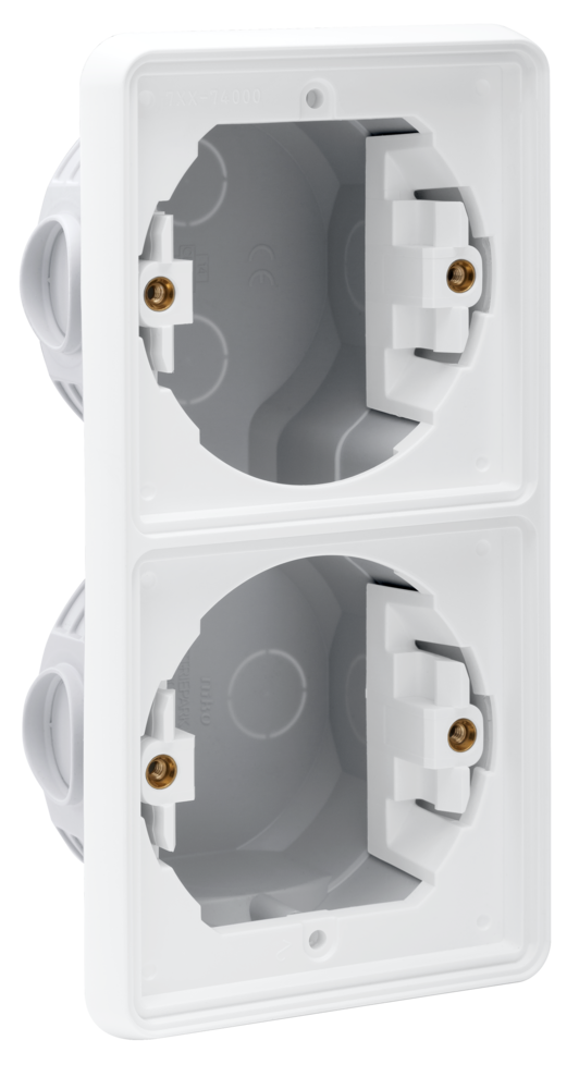 Deze tweevoudige verticale montagedoos is geschikt voor het inbouwen van twee spuitwaterdichte functies. Het geheel is spuitwaterdicht wat het uitermate geschikt maakt voor gebruik in vochtige ruimtes en ammoniakrijke omgevingen. Afwerkingskleur: wit.