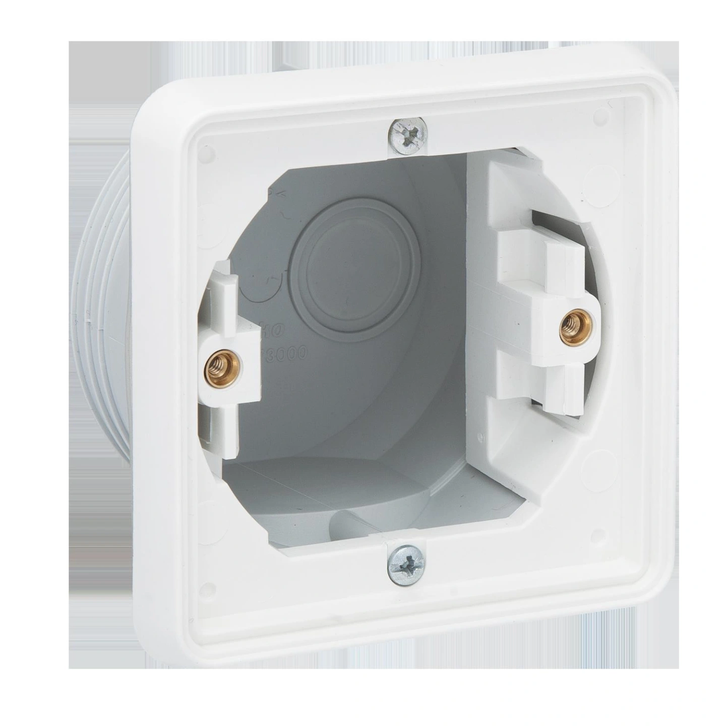 Deze montagedoos is geschikt voor het inbouwen van een spuitwaterdichte functie. Afwerkingskleur: wit.