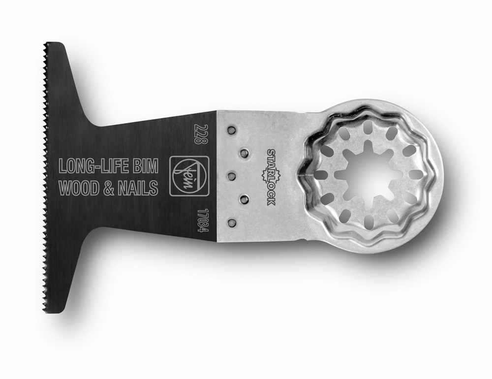 Bimetaal met geschrankte houtvertanding voor alle hout-, gipsplaat- en kunststof materialen. Uitstekende levensduur, hoge zaagkwaliteit en een goede zaagsnelheid. Uiterst robuust, ook ongevoelig voor spijkers die in hout zitten (tot ca. Ø 4 mm), metselwerk enz.