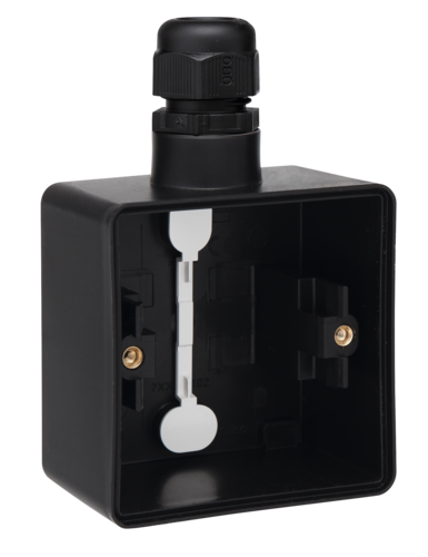 Deze opbouwdoos met één M20-ingang met wartel is geschikt voor het inbouwen van één functie. Het geheel is spuitwaterdicht wat het uitermate geschikt maakt voor gebruik in vochtige ruimtes en veeleisende omgevingen. Afwerkingskleur: black.