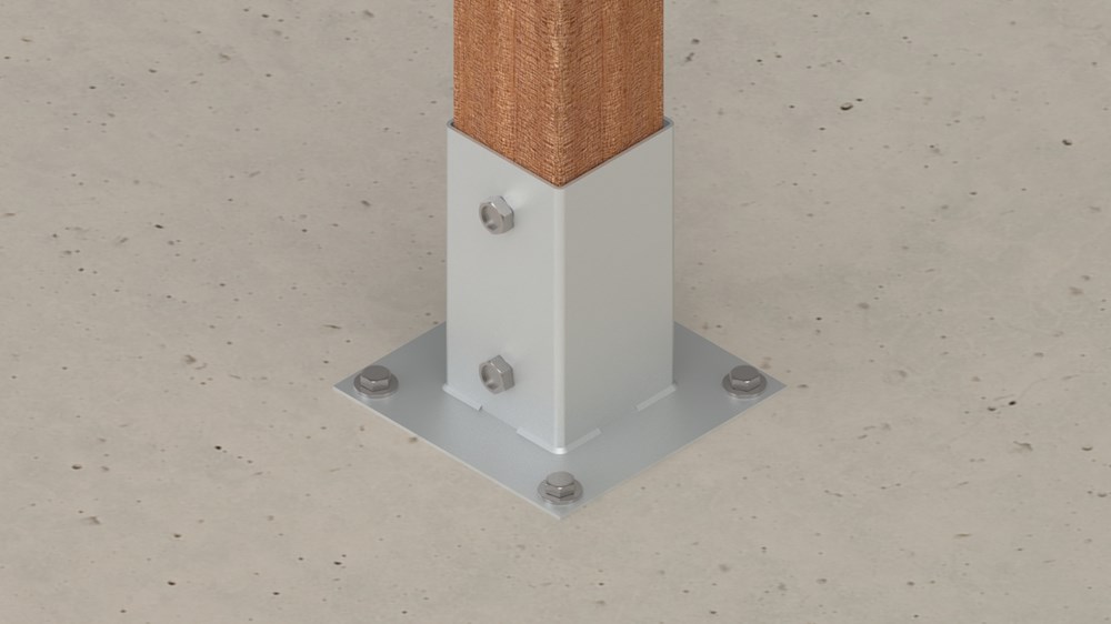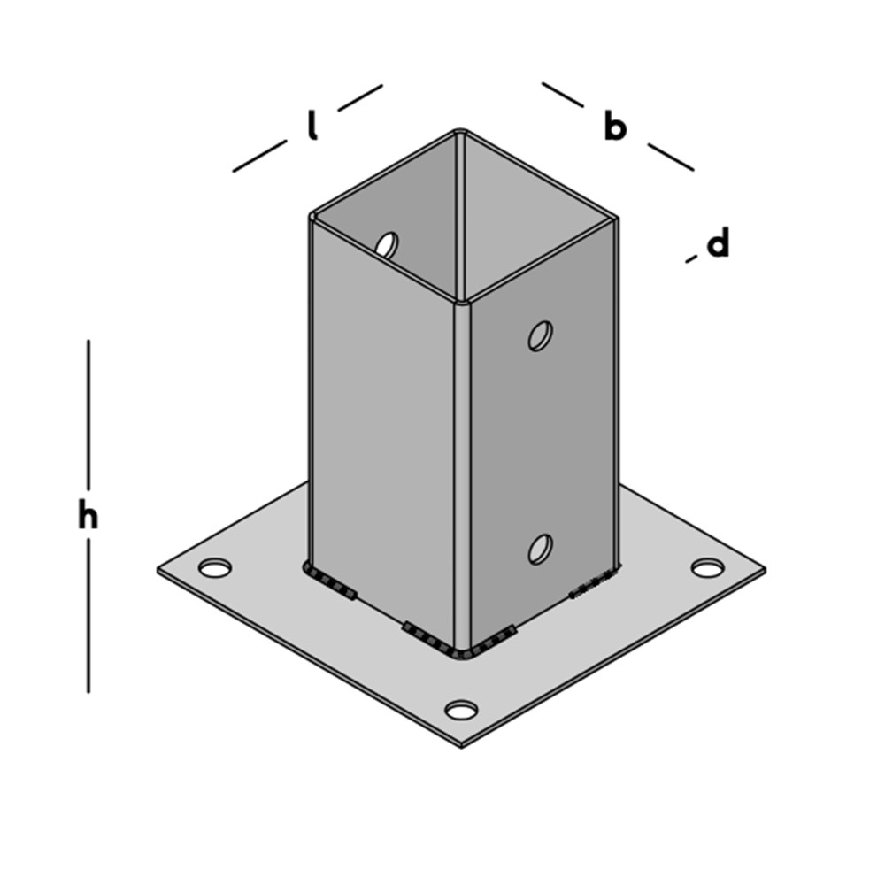 Paalhouder thermisch verzinkt 71x71mm opschroefmodel, te gebruiken voor het plaatsen van tuinpalen op een betonnen, stenen of houten ondergrond. Te gebruiken bij het plaatsen van tuinpalen voor een omheining, pergola's of vlechtschermen.