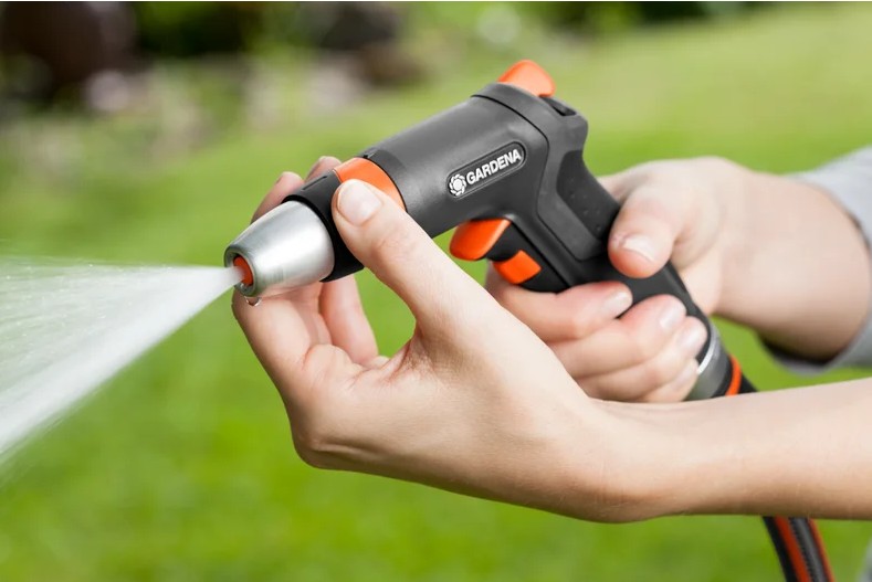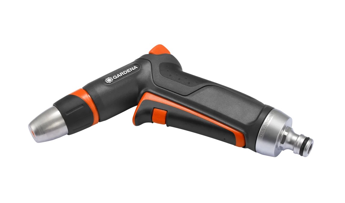 De robuuste GARDENA Premium Reinigingssproeier is geschikt voor zowel reiniging als bewatering. De nevel kan variabel worden ingesteld van volle straal tot een fijne nevel. De spuitkop en de connector zijn van metaal en daardoor erg duurzaam. De ergonomische handgreep met zachte kunststof componenten zorgt voor optimaal bedieningscomfort tijdens het gebruik. De waterstroom kan traploos worden ingesteld. Voor continu gebruik kan de impulshendel worden vastgezet. De Premium Reinigingssproeier beschikt bovendien over geïntegreerde bescherming tegen vorst.