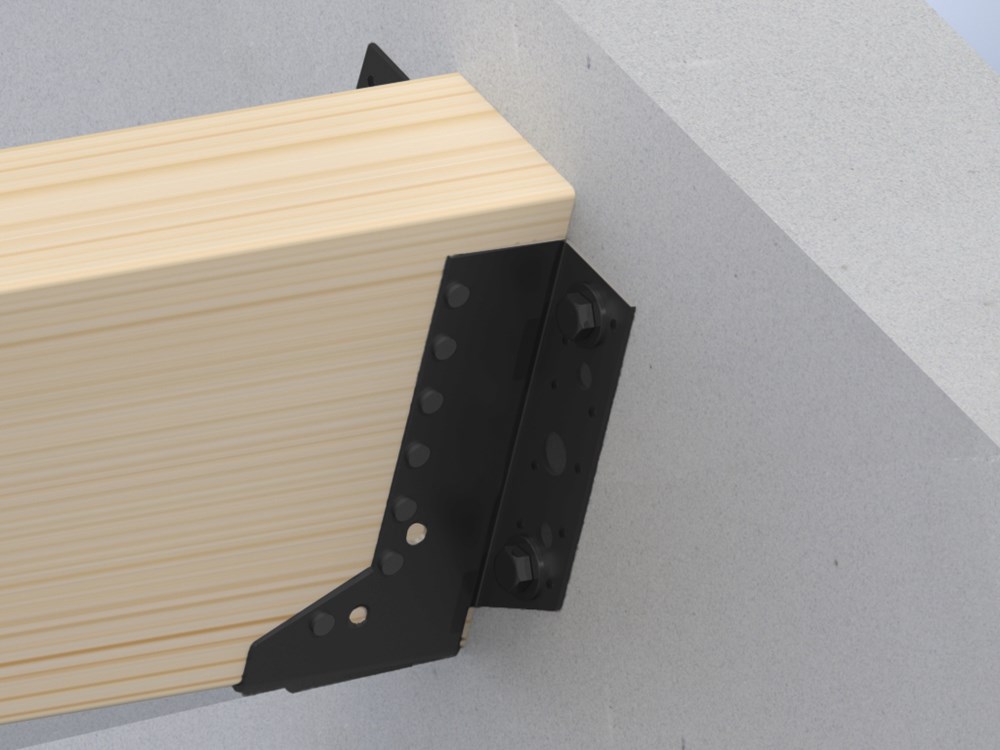 Balkdrager met zijflenzen, voor het bevestigen van dwarsbalken tegen een muur of tegen een andere houten balk. Deze balkdrager wordt ook toegepast voor het maken van ravelingen in vloeren en daken. Leverbaar voor de gangbare kopmaten van zowel geschaafd als ongeschaafd hout.