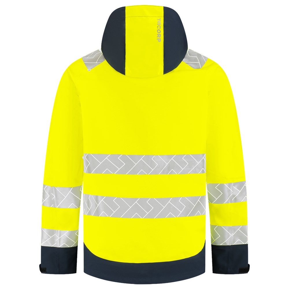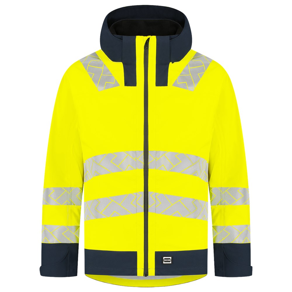 De Regenjas Techshell High Vis Redefined van Tricorp is gemaakt om elk weertype de baas te zijn. Deze high-performance regenjas is gemaakt van 100% gerecycled polyester met een high-stretch oxford weving, TPU-membraan en tricot beschermlaag. Wind, regen of slecht zicht? Geen probleem! Dankzij de normeringen EN 343 4-4 en ISO 20471 klasse 3 ben je volledig beschermd én zichtbaar. Met de Regenjas Techshell High Vis Redefined blijf je droog door de gelamineerde waterdichte ritsen, de verstelbare manchetten en de afneembare capuchon. De jas is ademend, lichtgewicht en heeft een comfortabele fleecekraag. Slim geplaatste reflectie-elementen op de torso, mouwen en schouders, zorgen voor 360° zichtbaarheid. Naast topkwaliteit op het gebied van bescherming en comfort, kies je met de Regenjas Techshell High Vis Redefined ook bewust voor duurzaamheid. Deze jas draagt niet alleen het GRS-keurmerk, maar ook het OEKO-TEX® 100-label ontbreekt niet. De Regenjas Techshell High Vis Redefined is verkrijgbaar in de maten XS tot en met 5XL en de kleuren Fluor Orange-Ink en Fluor Yellow-Ink, ontworpen voor professionals die buiten werken onder extreme omstandigheden: van wegenbouwers tot logistiek medewerkers. Combineer deze jas met andere items uit de High Vis Redefined-lijn voor een complete, professionele en duurzame werkoutfit.