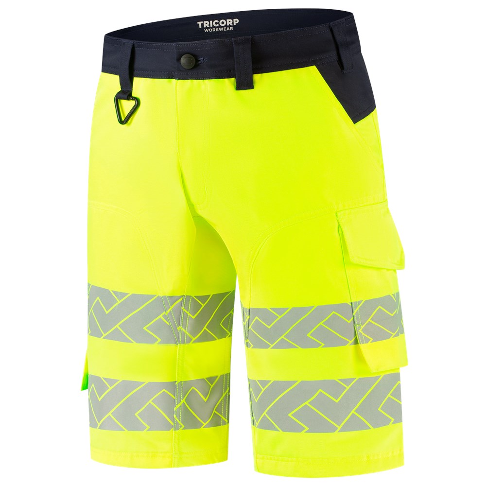 De Werkbroek Functional Stretch High Vis Redefined Kort van Tricorp is jouw ideale partner tijdens warme werkdagen waarin zichtbaarheid en bewegingsvrijheid essentieel zijn. Deze high visibility korte werkbroek combineert een lichte en duurzame stretchstof met functionele details die jouw werk gemakkelijker maken. De werkbroek is opgebouwd uit een 2-way stretch twillmix van 58% gerecycled polyester, 40% BCI-katoen, 2% elastaan, met een doekgewicht van 250 g/m². Dankzij strategisch geplaatste 4-way stretch panelen van 90% polyamide en 10% elastaan in het kruis beweegt deze werkbroek soepel met je mee. Ook het verhoogde achterpand is ondersteund met 4-way stretch panelen, zodat de broek altijd perfect aansluit. De slijtvaste Cordura® verstevigingen op kwetsbare delen zorgen ervoor dat deze broek bestand is tegen intensief gebruik. Dankzij de EN ISO 20471 certificering ben je altijd goed zichtbaar, zelfs bij weinig licht. De gesegmenteerde reflectiestrepen rondom de pijpen zorgen voor optimale zichtbaarheid zonder de flexibiliteit te beperken. En met handige opbergopties zoals ruime steek- en achterzakken, een duimstokzak, een dijbeenzak met klep én een afneembare D-ring, heb je je essentials altijd bij de hand. Met GRS-certificering én OEKO-TEX® 100 ben je verzekerd van een verantwoorde én veilige werkbroek. De Werkbroek Functional Stretch High Vis Redefined Kort, is 60°C wasbaar en blijft tot wel 50 wasbeurten voldoen aan de zichtbaarheidseisen. De broek is verkrijgbaar in de maten 42 - 66 en in de kleuren Fluor Orange-Ink en Fluor Yellow Ink. Combineer deze broek met andere items uit de High Vis Redefined-lijn voor een complete, professionele en duurzame werkoutfit.