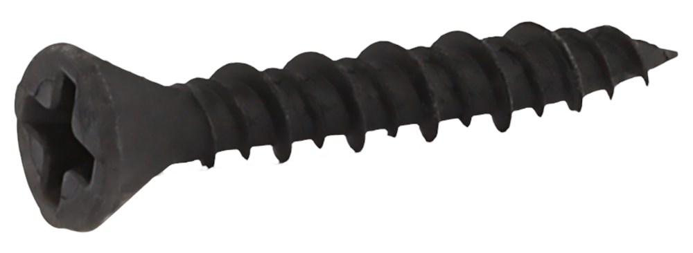 Type Fermacell. Zwart gefosfateerd, met hi-lo draad en 4 freesribben onder de kop, gehard, conische kop, met phillips kruis.