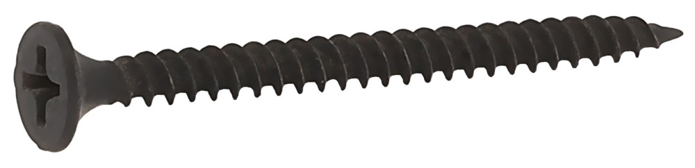 Type S. Zwart gefosfateerd, met fijne draad, scherpe punt en trompetkop.