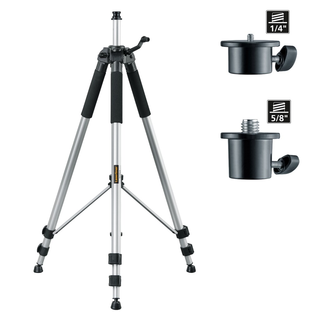 Dit lichte en robuuste aluminiumstatief is geschikt voor lasermeettoestellen met 1/4"- en 5/8"-schroefdraad. De krukslag en de uittrekbare statiefpoten maken het precies en gemakkelijk benaderen van de werkhoogte mogelijk. Dankzij flexibele punten, die zich optimaal aan de aard van de ondergrond aanpassen, kan de laser veilig en exact worden opgesteld. Met een maximale hoogte van 200 cm worden veelzijdige toepassingsmogelijkheden geboden. Door de eenvoudige hantering is het statief snel gebruiksklaar. Voor het praktische transport kan het statief tot slechts 70 cm in elkaar worden geschoven, ideaal voor het mobiele gebruik.