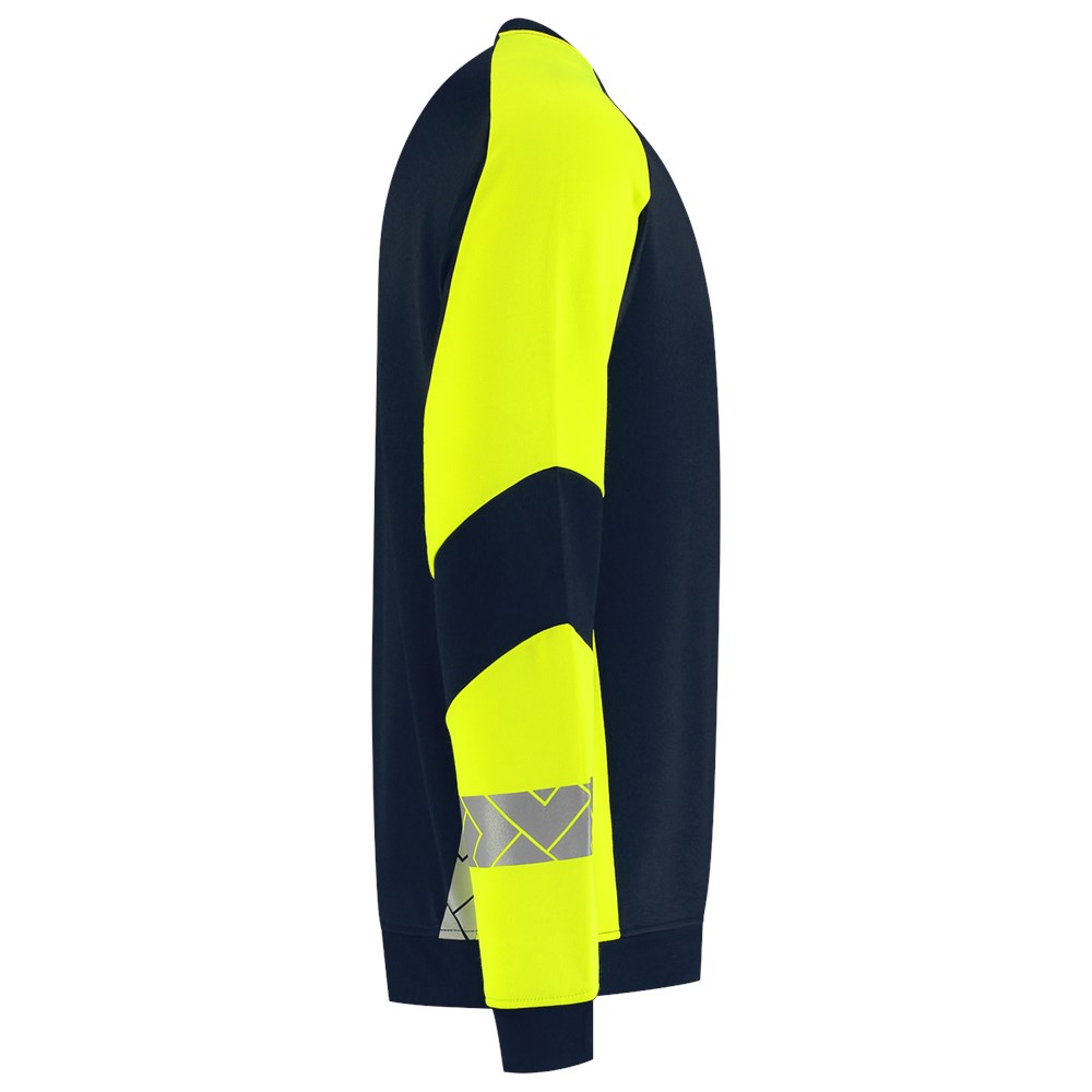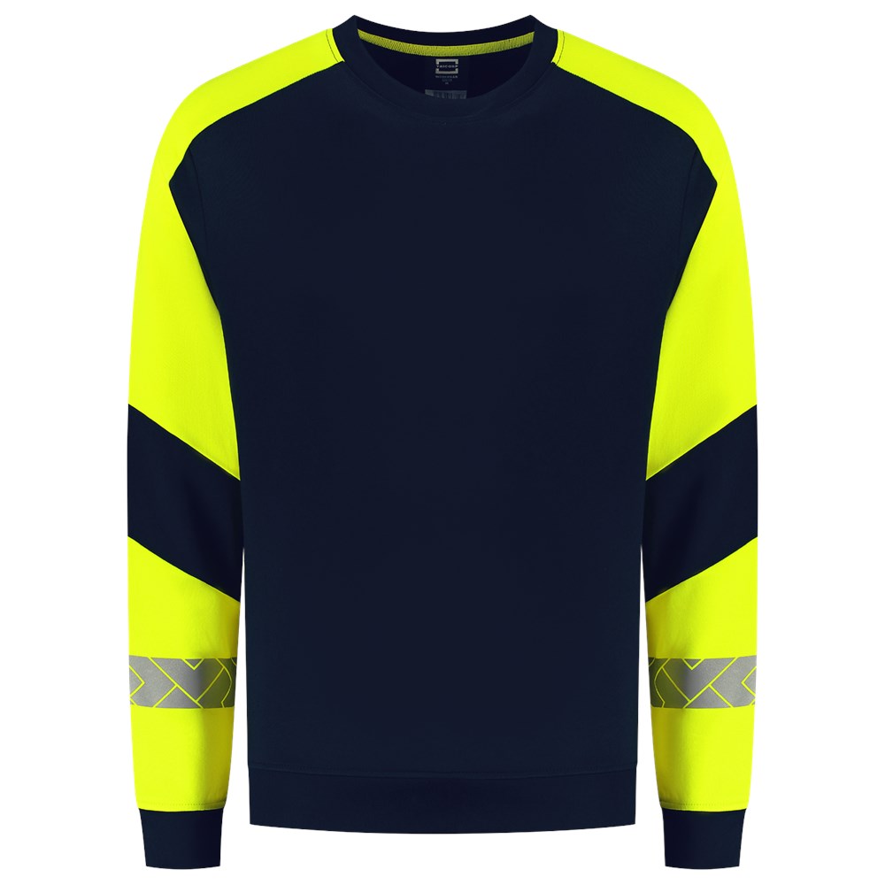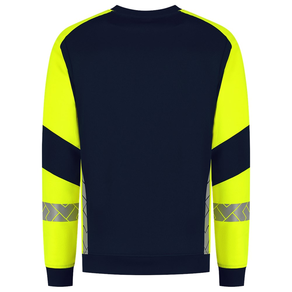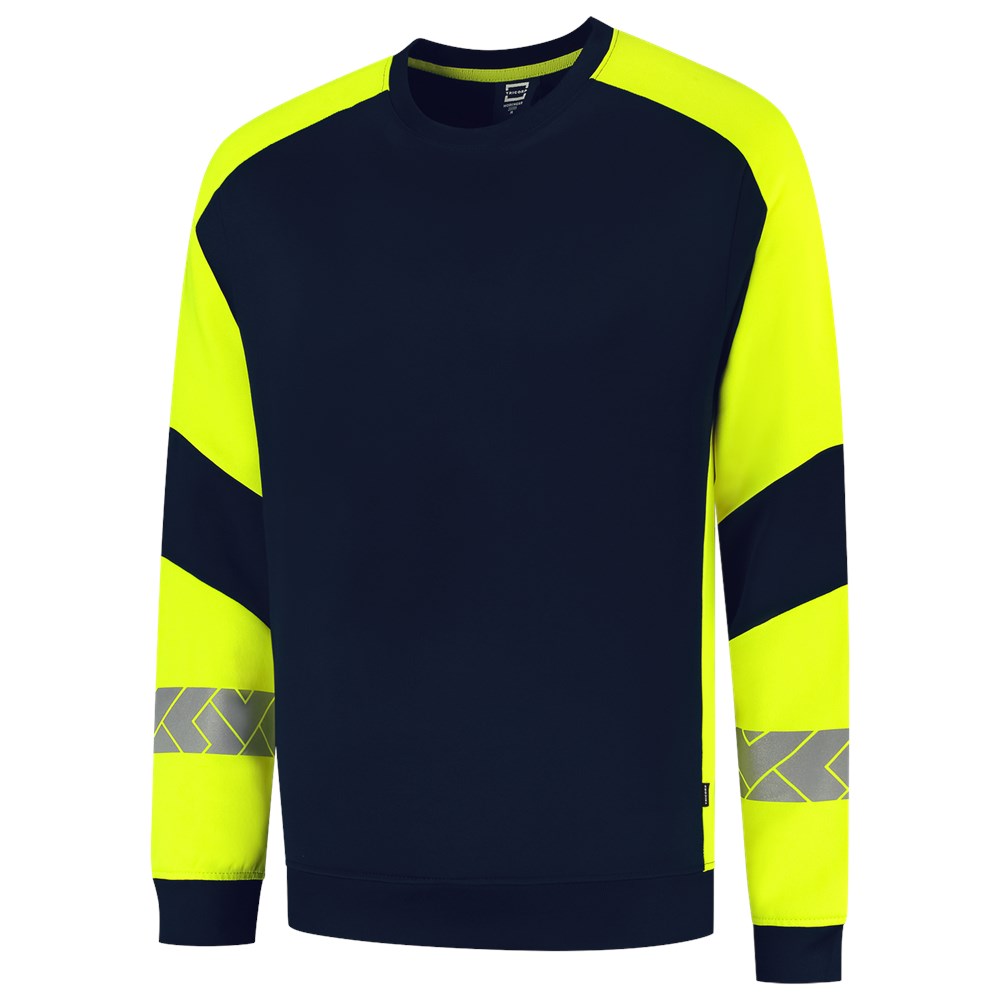De Sweater Reflective Redefined van Tricorp is jouw betrouwbare partner voor zichtbaarheid én comfort op de werkvloer. Deze unisex sweater is gemaakt van 65% recycled polyester en 35% biologisch katoen en met een American fleece binnenkant, voelt de sweater zacht. Dankzij de gesegmenteerde reflectie op de mouwen en de rug blijf je zichtbaar bij dag én nacht volgens EN ISO 17535 normering voor medium risico. Met een doekgewicht van 280 g/m² en een regular fit zit de Sweater Reflective Redefined als gegoten. Dankzij de Polygiene® StayFresh-technologie blijft je sweater ook na intensief gebruik langer fris. De normering blijft tot wel 50 wasbeurten op 60 °C behouden, waardoor slijtage of verminderde zichtbaarheid geen zorg is. Perfect voor professionals in de bouw, logistiek of industrie die veiligheid en duurzaamheid willen combineren. Verkrijgbaar in maten XS tot en met 5XL en de kleuren Black-Fluor Yellow en Ink-Fluor Yellow. Combineer deze sweater met andere items uit de Reflective Redefined-lijn voor een complete, professionele en duurzame werkoutfit.