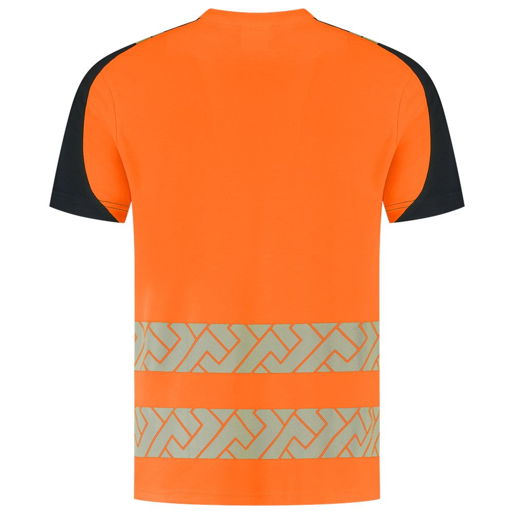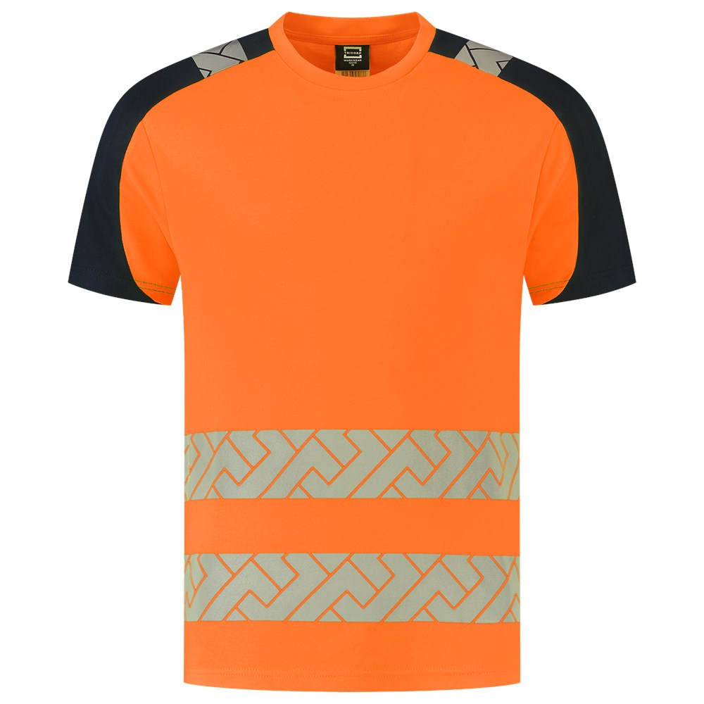 Het T-shirt High Vis Redefined van Tricorp is ontworpen voor professionals die hoge zichtbaarheid en comfort nodig hebben tijdens het werk. Dit reflecterende werkshirt is gemaakt van 100% gerecycled polyester, heeft een doekgewicht van 150 g/m2 en is voorzien van Polygiene StayFresh™ technologie, wat zorgt voor langdurige frisheid; ook tijdens lange werkdagen. Dankzij de gesegmenteerde reflectie rondom de torso en schouders biedt het T-shirt uitstekende zichtbaarheid, zonder dat dit ten koste gaat van je bewegingsvrijheid. Het voldoet aan de EN ISO 20471 klasse 2-norm (klasse 1 voor maat XS) en biedt betrouwbare bescherming tegen schadelijke UV-straling dankzij de UPF 40+ classificatie volgens de EN 13758-norm voor UV-beschermende kleding. De ademende en lichte birdseye-constructie zorgt voor extra draagcomfort, terwijl de regular fit en de ronde hals bijdragen aan een prettige pasvorm. Het T-shirt is verkrijgbaar in maten XS tot en met 5XL en leverbaar in de kleuren Fluor Orange-Ink en Fluor Yellow-Ink. Daarnaast blijft het product minimaal 50 wasbeurten van 40 graden voldoen aan de geldende veiligheidsnormen. Combineer dit T-shirt met andere items uit de High Vis Redefined-lijn voor een complete, professionele en duurzame werkoutfit.