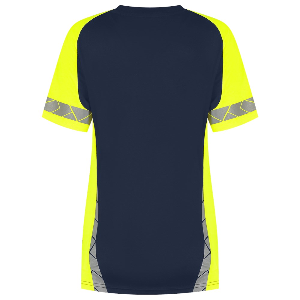 Het T-shirt Reflective Redefined Dames van Tricorp combineert duurzaamheid, comfort en zichtbaarheid, speciaal ontworpen voor vrouwelijke professionals die dag en nacht veilig willen werken. Dit dames T-shirt is gemaakt van een hoogwaardige mix van 55% biologisch katoen en 45% recycled polyester, met een doekgewicht van 180 g/m². Door de biologische katoenlaag aan de binnenzijde voelt het T-shirt zacht en comfortabel aan, met uitstekende vochtabsorptie, terwijl de polyester buitenkant zorgt voor duurzaamheid en een strakke afwerking. Dankzij de gesegmenteerde reflectie rondom de mouwen en reflecterende elementen op de rug, voldoet dit werkshirt aan EN ISO 17353 Medium Risk voor dag- en nachtzichtbaarheid. De ademende pique-structuur zorgt voor een goede luchtcirculatie, wat bijdraagt aan een comfortabel draaggevoel, zelfs tijdens intensieve werkzaamheden. Het T-shirt heeft een regular fit, een klassieke ronde hals en korte mouwen, waardoor het gemakkelijk te combineren is met andere veiligheidskleding. Het product is gecertificeerd met het GRS-keurmerk (Global Recycled Standard) en draagt het OEKO-TEX 100 label, wat garant staat voor milieuvriendelijke en veilige materialen. Het T-shirt is verkrijgbaar in de maten XS tot en met 5XL en in de kleuren Black-Fluor Yellow en Ink-Fluor Yellow. Daarnaast is het T-shirt wasbaar op 60 graden en behoudt het zijn zichtbaarheid en functionele eigenschappen minimaal 50 wasbeurten. Dankzij de ingebouwde Polygiene StayFresh® technologie blijft het T-shirt fris en geurvrij tijdens lange werkdagen. Ook biedt het werkshirt betrouwbare bescherming tegen schadelijke UV-straling dankzij de UPF 40+ classificatie volgens de EN 13758-norm voor UV-beschermende kleding. Combineer dit T-shirt met andere items uit de Reflective Redefined-lijn voor een complete, professionele en duurzame werkoutfit.