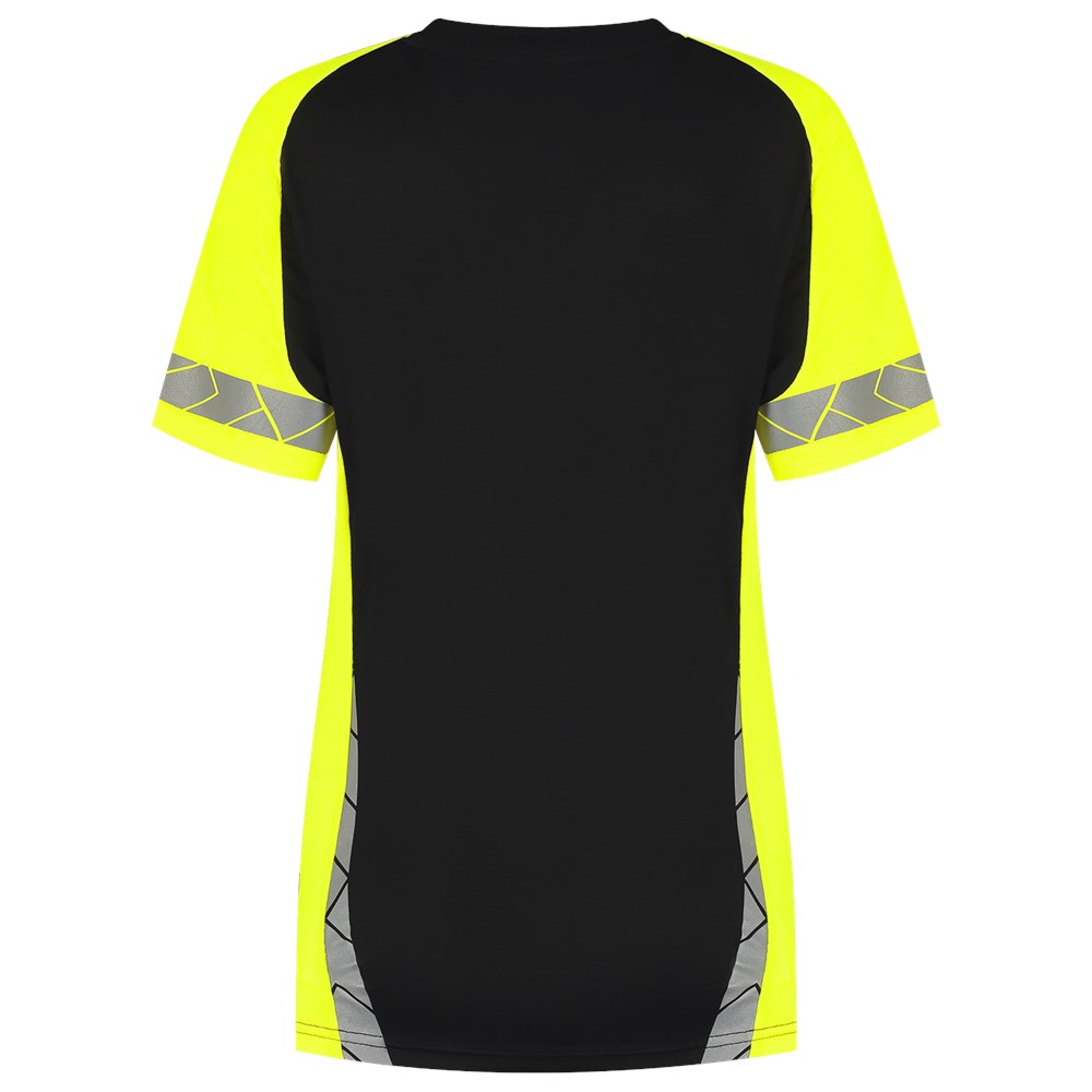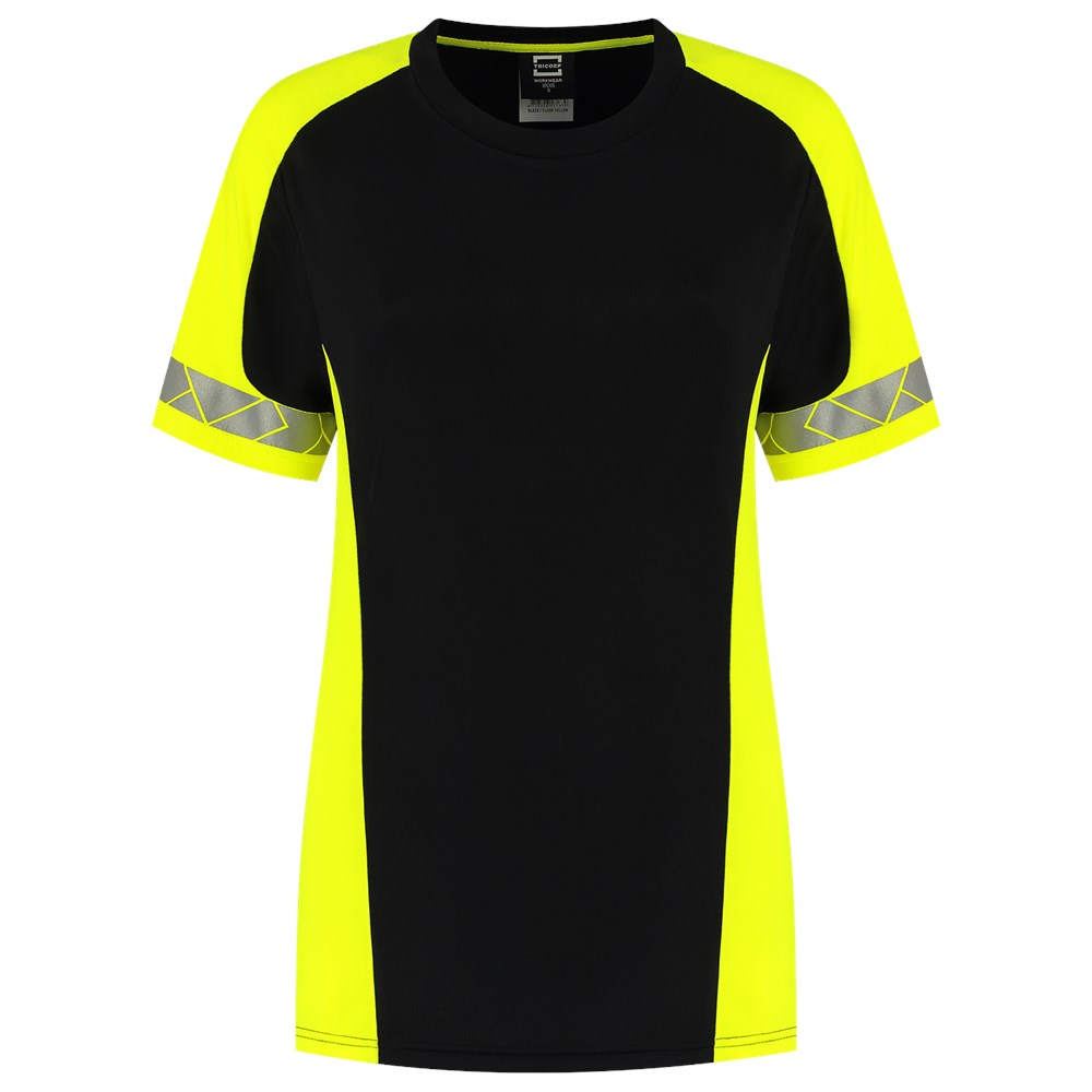 Het T-shirt Reflective Redefined Dames van Tricorp combineert duurzaamheid, comfort en zichtbaarheid, speciaal ontworpen voor vrouwelijke professionals die dag en nacht veilig willen werken. Dit dames T-shirt is gemaakt van een hoogwaardige mix van 55% biologisch katoen en 45% recycled polyester, met een doekgewicht van 180 g/m². Door de biologische katoenlaag aan de binnenzijde voelt het T-shirt zacht en comfortabel aan, met uitstekende vochtabsorptie, terwijl de polyester buitenkant zorgt voor duurzaamheid en een strakke afwerking. Dankzij de gesegmenteerde reflectie rondom de mouwen en reflecterende elementen op de rug, voldoet dit werkshirt aan EN ISO 17353 Medium Risk voor dag- en nachtzichtbaarheid. De ademende pique-structuur zorgt voor een goede luchtcirculatie, wat bijdraagt aan een comfortabel draaggevoel, zelfs tijdens intensieve werkzaamheden. Het T-shirt heeft een regular fit, een klassieke ronde hals en korte mouwen, waardoor het gemakkelijk te combineren is met andere veiligheidskleding. Het product is gecertificeerd met het GRS-keurmerk (Global Recycled Standard) en draagt het OEKO-TEX 100 label, wat garant staat voor milieuvriendelijke en veilige materialen. Het T-shirt is verkrijgbaar in de maten XS tot en met 5XL en in de kleuren Black-Fluor Yellow en Ink-Fluor Yellow. Daarnaast is het T-shirt wasbaar op 60 graden en behoudt het zijn zichtbaarheid en functionele eigenschappen minimaal 50 wasbeurten. Dankzij de ingebouwde Polygiene StayFresh® technologie blijft het T-shirt fris en geurvrij tijdens lange werkdagen. Ook biedt het werkshirt betrouwbare bescherming tegen schadelijke UV-straling dankzij de UPF 40+ classificatie volgens de EN 13758-norm voor UV-beschermende kleding. Combineer dit T-shirt met andere items uit de Reflective Redefined-lijn voor een complete, professionele en duurzame werkoutfit.