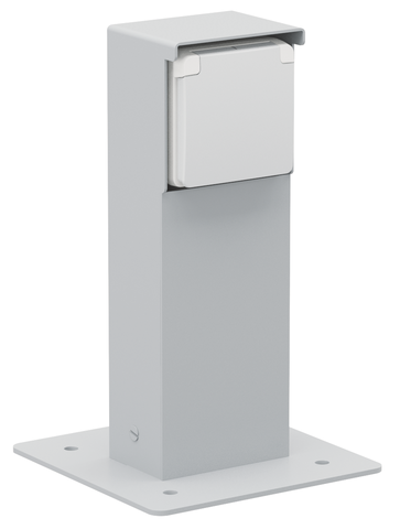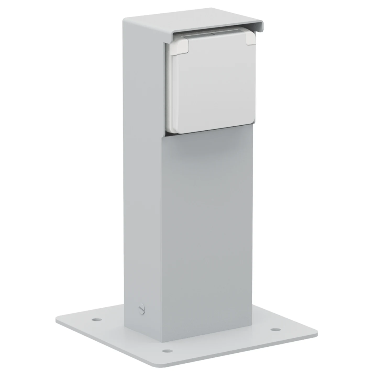 De tuinpaal bevat één stopcontact (16 A/250 Vac) met randaarde, beschermingsafsluiters en insteekklemmen. Hij heeft een IP55-beschermingsgraad en is voorzien van een grondplaat om hem op een hard oppervlak te plaatsen. Door zijn functionele en knappe design is de tuinpaal perfect voor buiten, zoals op terrassen en in buitenkeukens. Het geheel is bovendien spuitwaterdicht en dus uitermate geschikt voor gebruik in vochtige ruimtes en ammoniakrijke omgevingen.