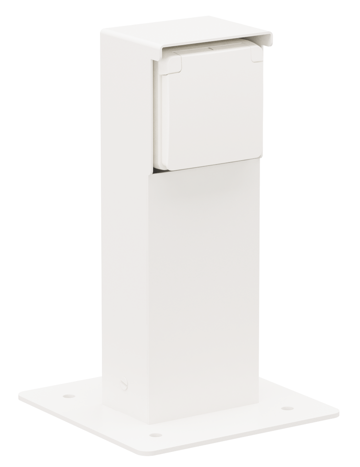 De tuinpaal bevat één stopcontact (16 A/250 Vac) met randaarde, beschermingsafsluiters en insteekklemmen. Hij heeft een IP55-beschermingsgraad en is voorzien van een grondplaat om hem op een hard oppervlak te plaatsen. Door zijn functionele en knappe design is de tuinpaal perfect voor buiten, zoals op terrassen en in buitenkeukens. Het geheel is bovendien spuitwaterdicht en dus uitermate geschikt voor gebruik in vochtige ruimtes en ammoniakrijke omgevingen.