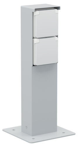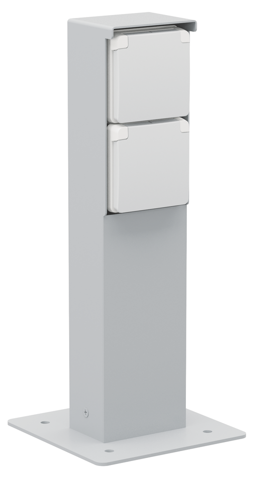 De tuinpaal bevat twee stopcontacten (16 A/250 Vac) met randaarde, beschermingsafsluiters en insteekklemmen. Hij heeft een IP55-beschermingsgraad en is voorzien van een grondplaat om hem op een hard oppervlak te plaatsen. Door zijn functionele en knappe design is de tuinpaal perfect voor buiten, zoals op terrassen en in buitenkeukens. Het geheel is bovendien spuitwaterdicht en dus uitermate geschikt voor gebruik in vochtige ruimtes en ammoniakrijke omgevingen.