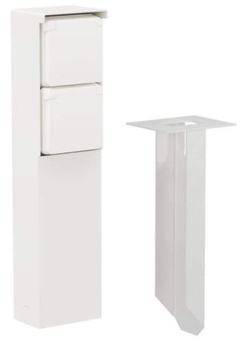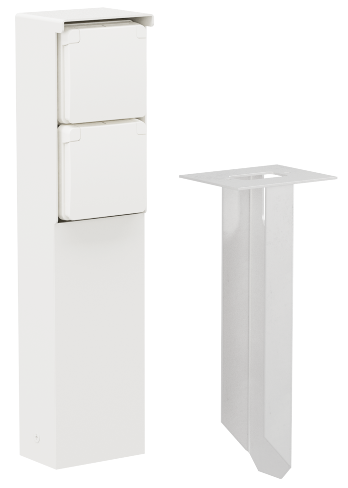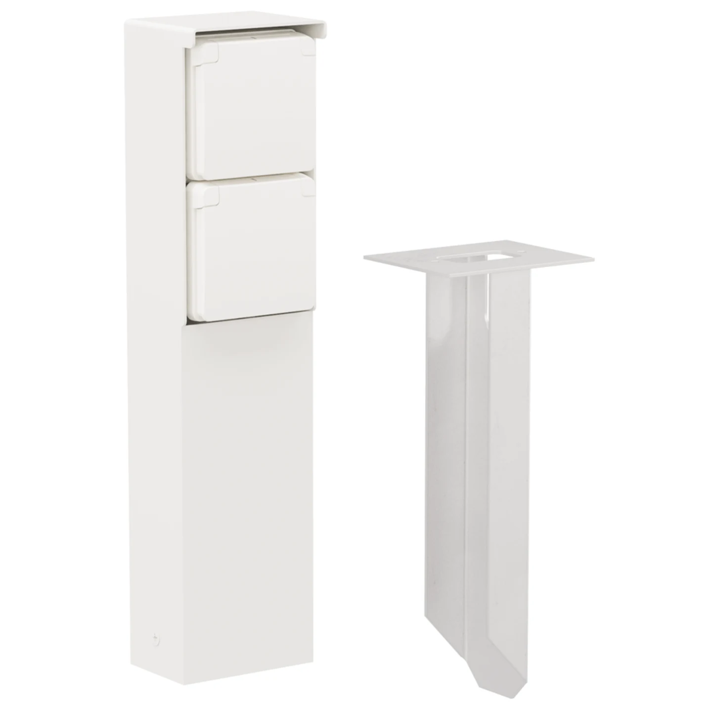De tuinpaal bevat twee stopcontacten (16 A/250 Vac) met randaarde, beschermingsafsluiters en insteekklemmen. Hij heeft een IP55-beschermingsgraad en een pin die rechtstreeks in de grond moet worden gestopt. Door zijn functionele en knappe design is de tuinpaal perfect voor buiten, zoals op terrassen en in buitenkeukens. Het geheel is bovendien spuitwaterdicht en dus uitermate geschikt voor gebruik in vochtige ruimtes en ammoniakrijke omgevingen.