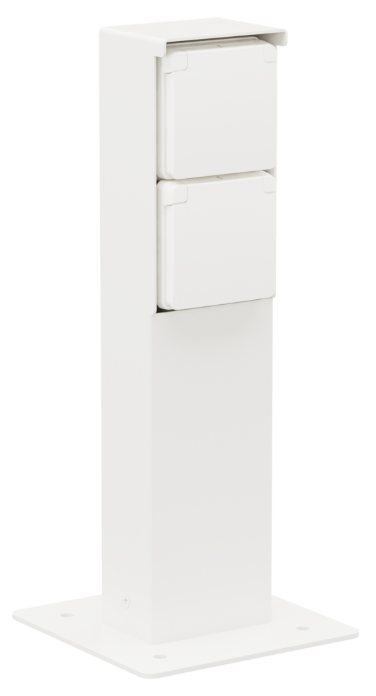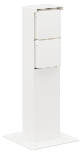 De tuinpaal bevat twee stopcontacten (16 A/250 Vac) met randaarde, beschermingsafsluiters en insteekklemmen. Hij heeft een IP55-beschermingsgraad en is voorzien van een grondplaat om hem op een hard oppervlak te plaatsen. Door zijn functionele en knappe design is de tuinpaal perfect voor buiten, zoals op terrassen en in buitenkeukens. Het geheel is bovendien spuitwaterdicht en dus uitermate geschikt voor gebruik in vochtige ruimtes en ammoniakrijke omgevingen.