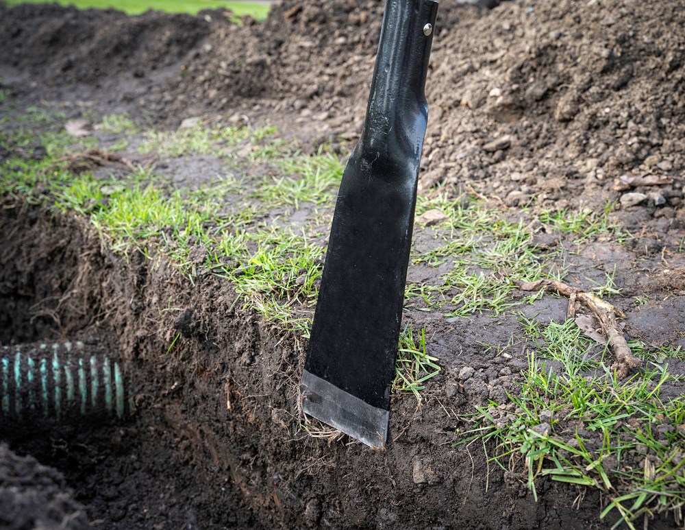 De Roughneck MUTT Pro schraper is ideaal voor snijden, hakken, graven, randen maken, schrapen, sleuven graven en nog veel meer. Het gesmeed stalen, warmtebehandelde mes is gepoedercoat met een gepolijste punt om een ​​grotere weerstand tegen corrosie te bieden en kan opnieuw worden geslepen om de snijkant te behouden. Beschikt over een duurzaam en corrosiebestendig massief glasvezelkernhandvat met comfortabele dubbel geïnjecteerde D-grip.