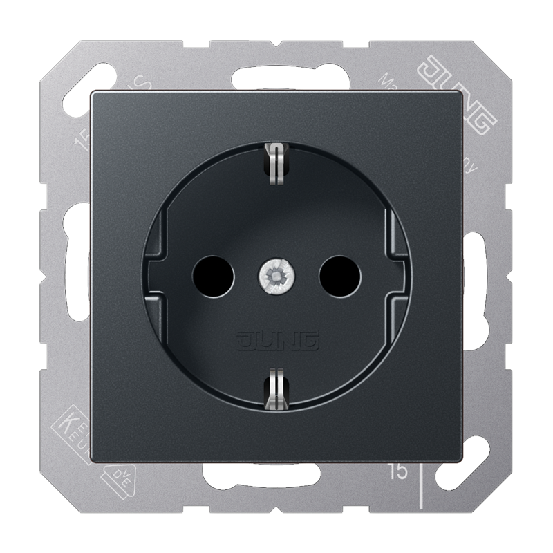 Jung A500 1-voudige wandcontactdoos met randaarde, slagvast, inbouw, thermoplast, steekklem, antraciet.
