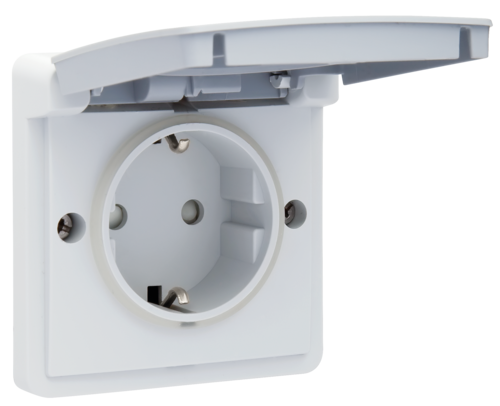 Dit stopcontact is voorzien van randaarde, beschermingsafsluiters, met insteekklemmen en een beschermklep met scharnieren. Het mechanisme wordt in een spuitwaterdichte montagedoos geplaatst. Het geheel is spuitwaterdicht en hierdoor uitermate geschikt voor gebruik in vochtige ruimtes en ammoniakrijke omgevingen. Kleurcombinatie: lichtgrijs met donkergrijze beschermklep.