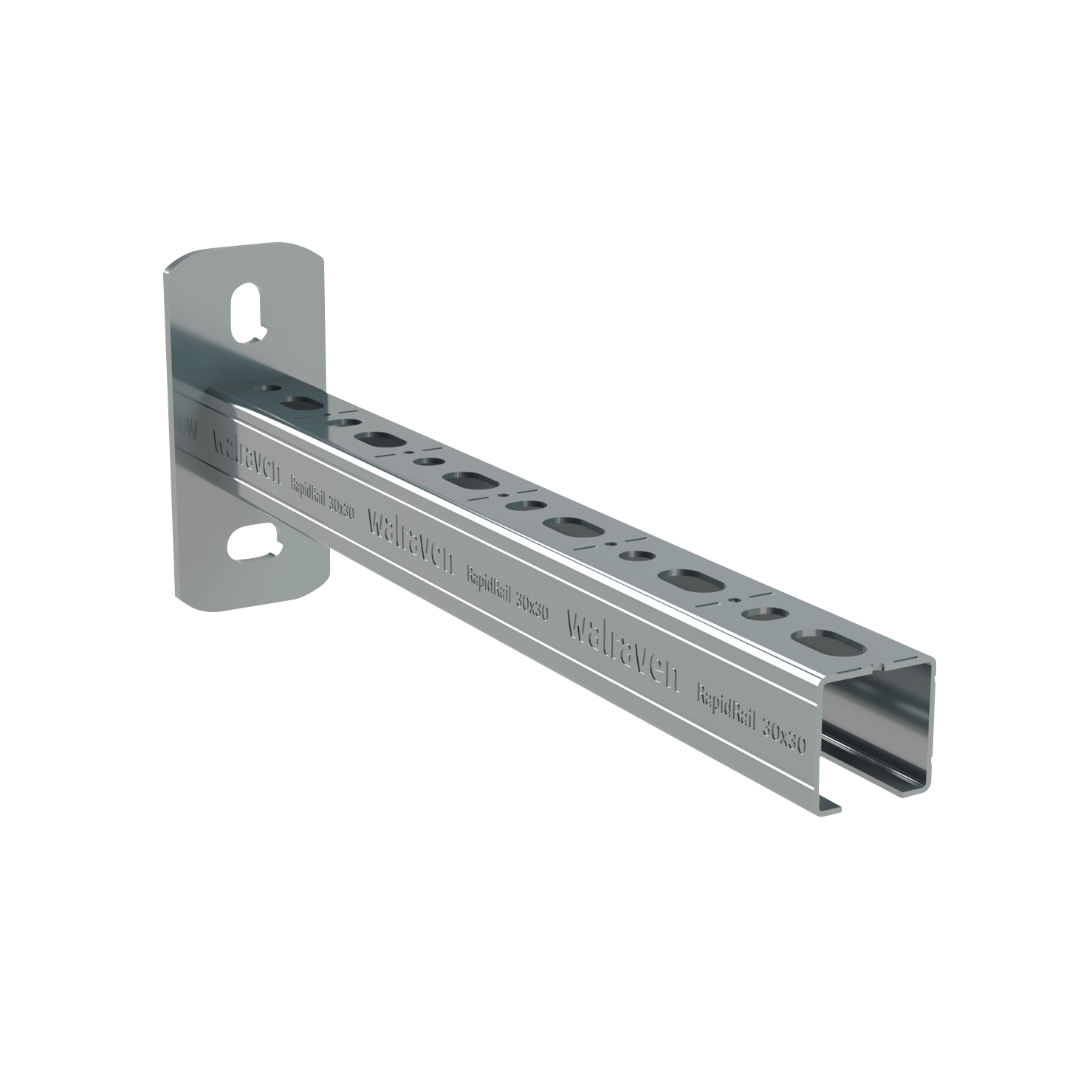 • uniek gatenpatroon bij rail 30x20 en 38x40 maakt het mogelijk om walraven RapidRail® Hammerfix van beide kanten in te klikken
