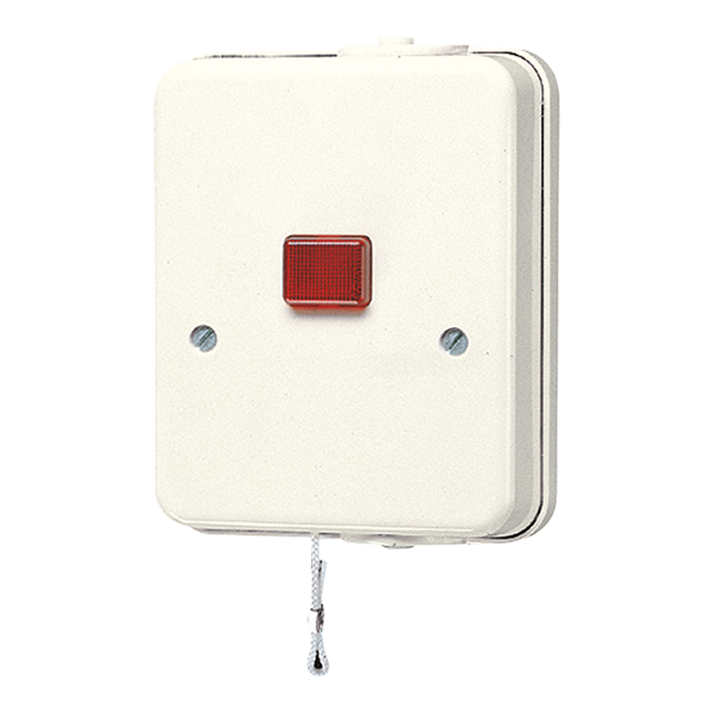 Jung AP600 installatieschakelaar, kunststof, crème-wit/elektrowit, type schakeling wisselschakelaar, bedieningswijze trekkoord, samenstelling basiselement met volle af, opbouw, kwaliteitsklasse duroplast, halogeenvrij, oppervlaktebescherming overig, uitvoering oppervlakte glanzend, RAL-nummer 1013.