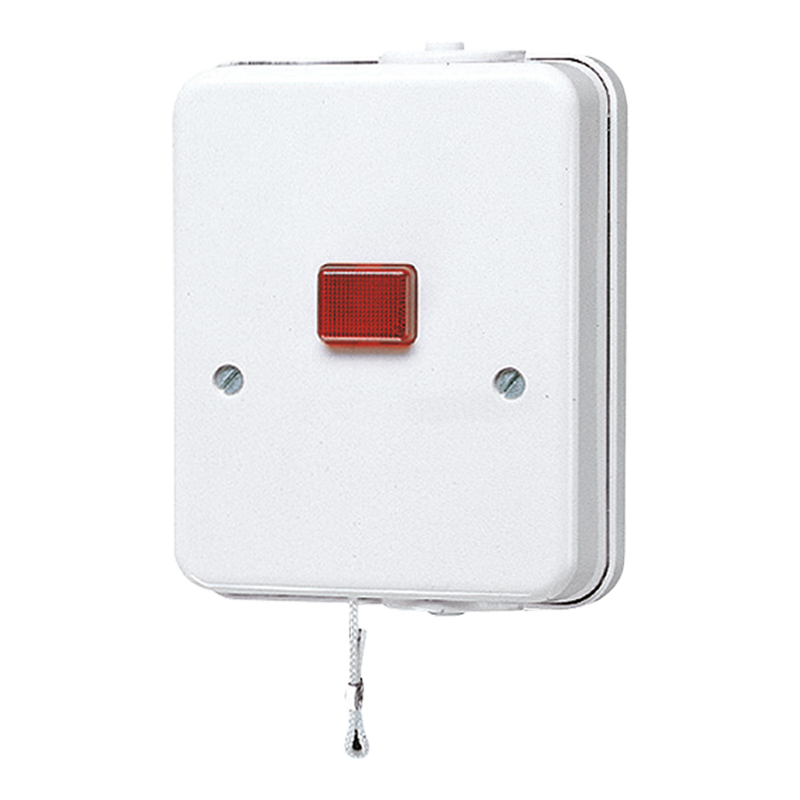 Jung AP600 installatieschakelaar, kunststof, wit, type schakeling wisselschakelaar, bedieningswijze trekkoord, samenstelling basiselement met volle af, opbouw, kwaliteitsklasse duroplast, halogeenvrij, oppervlaktebescherming overig, uitvoering oppervlakte glanzend, RAL-nummer 9016, verlichting.