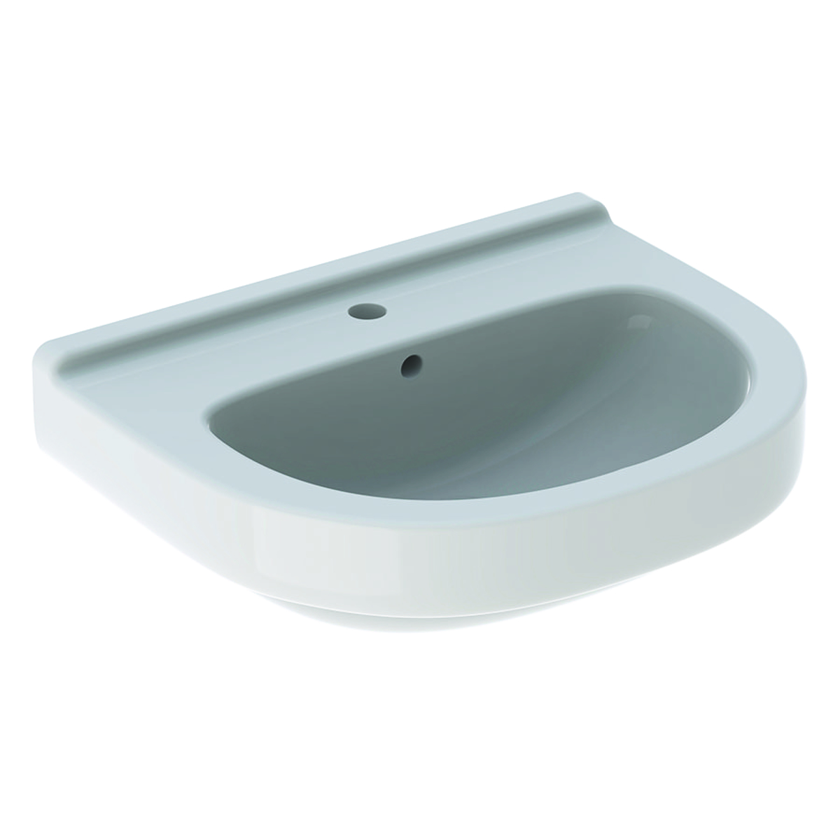 Geberit 300 Basic Arco, Wastafel, 1x waskom, kraangat midden, overloop, keramiek, 600 x 490 x 195mm (BxDxH), wit.