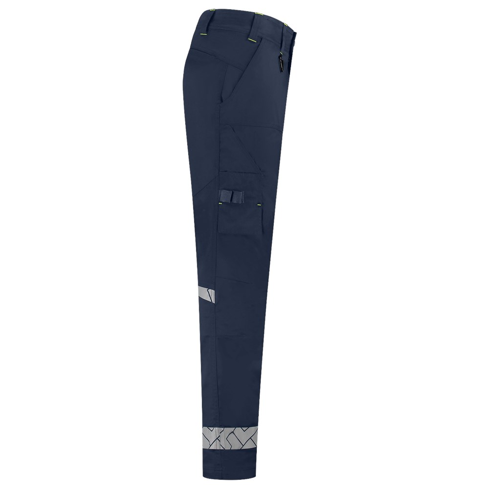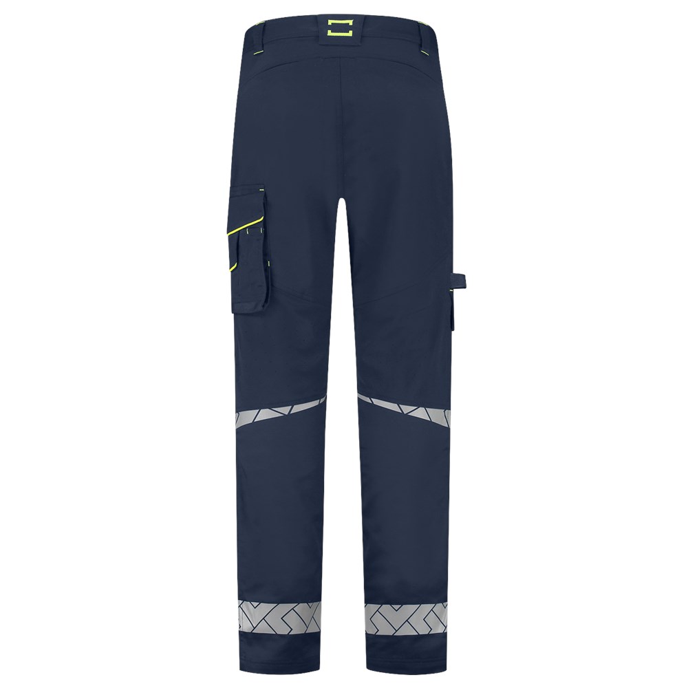De Werkbroek Functional Stretch Reflective Redefined van Tricorp is jouw antwoord op werkcomfort, zichtbaarheid én duurzaamheid. Gemaakt van een stevige maar flexibele materiaalmix van 58% gerecycled polyester, 40% biologisch katoen en 2% elastaan, met een doekgewicht van 250 g/m2, biedt deze broek niet alleen een duurzame keuze, maar ook maximale bewegingsvrijheid. Dankzij strategisch geplaatste 4-way stretch panelen van 90% polyamide en 10% elastaan in het kruis en de knieholtes beweegt deze werkbroek soepel met je mee. Ook het verhoogde achterpand is ondersteund met 4-way stretch panelen, zodat de broek altijd perfect aansluit. De combinatie van 2-way stretch twill en ventilerende zones in de knieholtes zorgt voor optimaal comfort tijdens fysiek zwaar werk. Dankzij slimme details zoals een duimstokzak, smartphonezak met klep, dijbeenzak met volumeplooi én Cordura® verstevigingen op slijtgevoelige plekken, is deze werkbroek gemaakt voor actie. De verbeterde pasvorm en stevige ritssluiting zorgen ervoor dat je altijd klaar bent voor je klus. De broek is voorzien van afneembare D-ring en praktische riemlussen en is verkrijgbaar in 3 verschillende lengtematen. Daarnaast zorgen de gesegmenteerde reflectie rondom de pijpen en reflectie elementen aan de achterzijde voor nachtzichtbaarheid medium risk, conform EN 17353, waarbij deze normering behouden blijft tot wel 50 wasbeurten van 60 graden. Kortom, met deze werkbroek ben je niet alleen overdag, maar ook in het donker goed zichtbaar! Bovendien draag je met trots een broek die is gemaakt van gerecycled polyester en biologisch katoen, voorzien van zowel het OCS en GRS-label als het OEKO-TEX® Standard 100-certificaat. Dat betekent: veilig op de huid én aantoonbaar duurzaam geproduceerd. De Werkbroek Functional Stretch Reflective Redefined is leverbaar in 3 verschillende lengtematen 42-66, 45-59 en 22-29 en de kleuren Black-Fluor Yellow en Ink-Fluor Yellow. Combineer deze broek met andere items uit de Reflective Redefined-lijn voor een complete, professionele en duurzame werkoutfit.